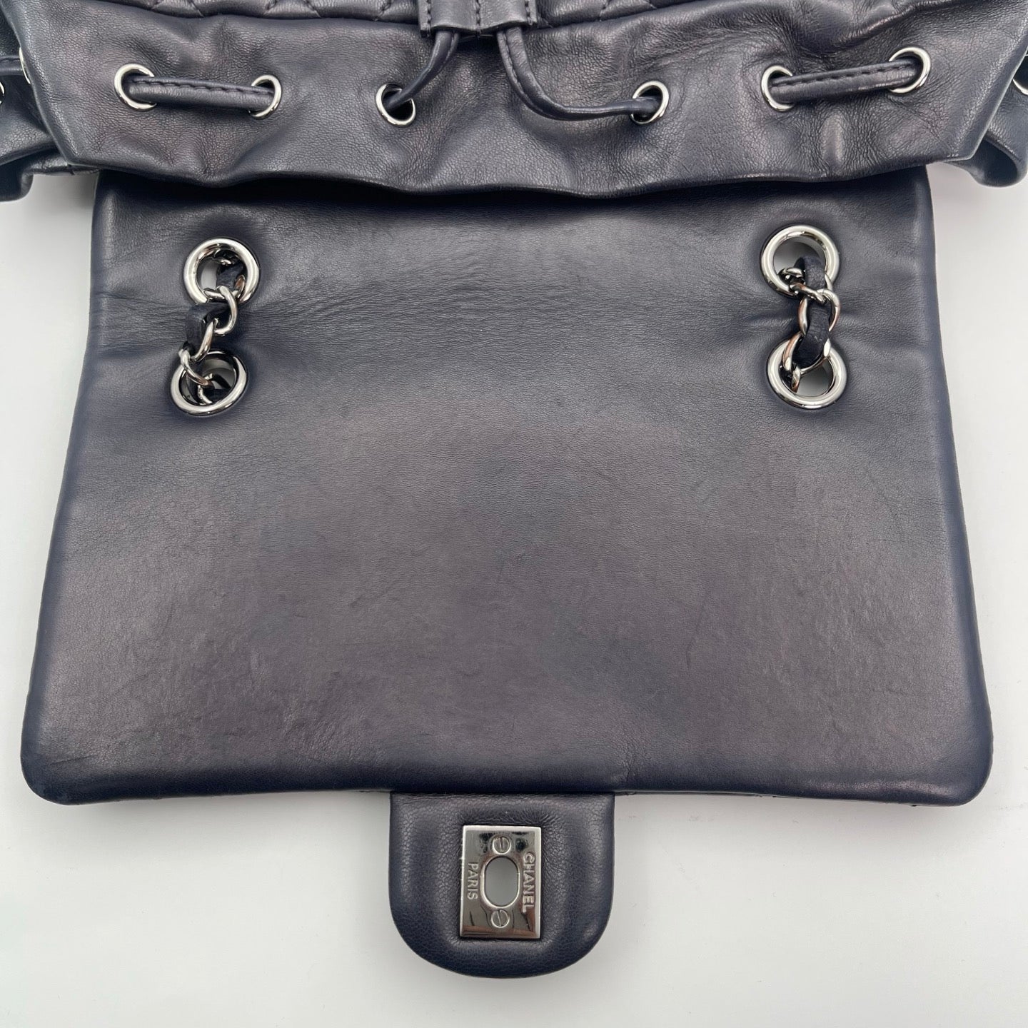 Chanel Navy Blue Lambskin Salzburg Backpack Silver Hardware [Used]