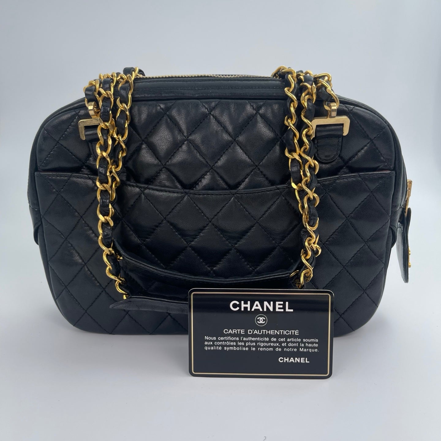 Chanel Quilted Camera Bag – Black Lambskin Leather [Used]