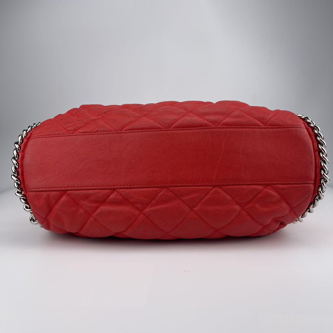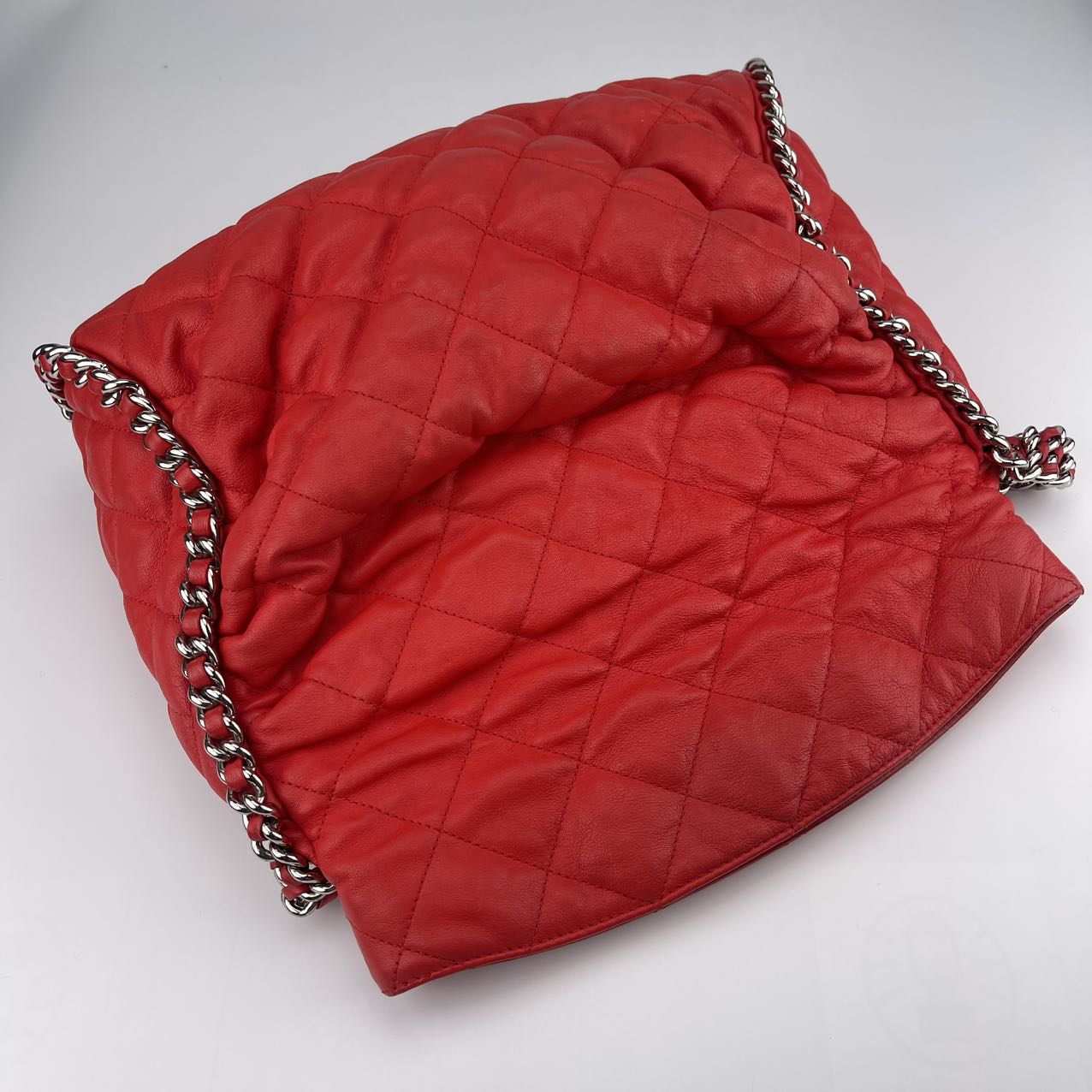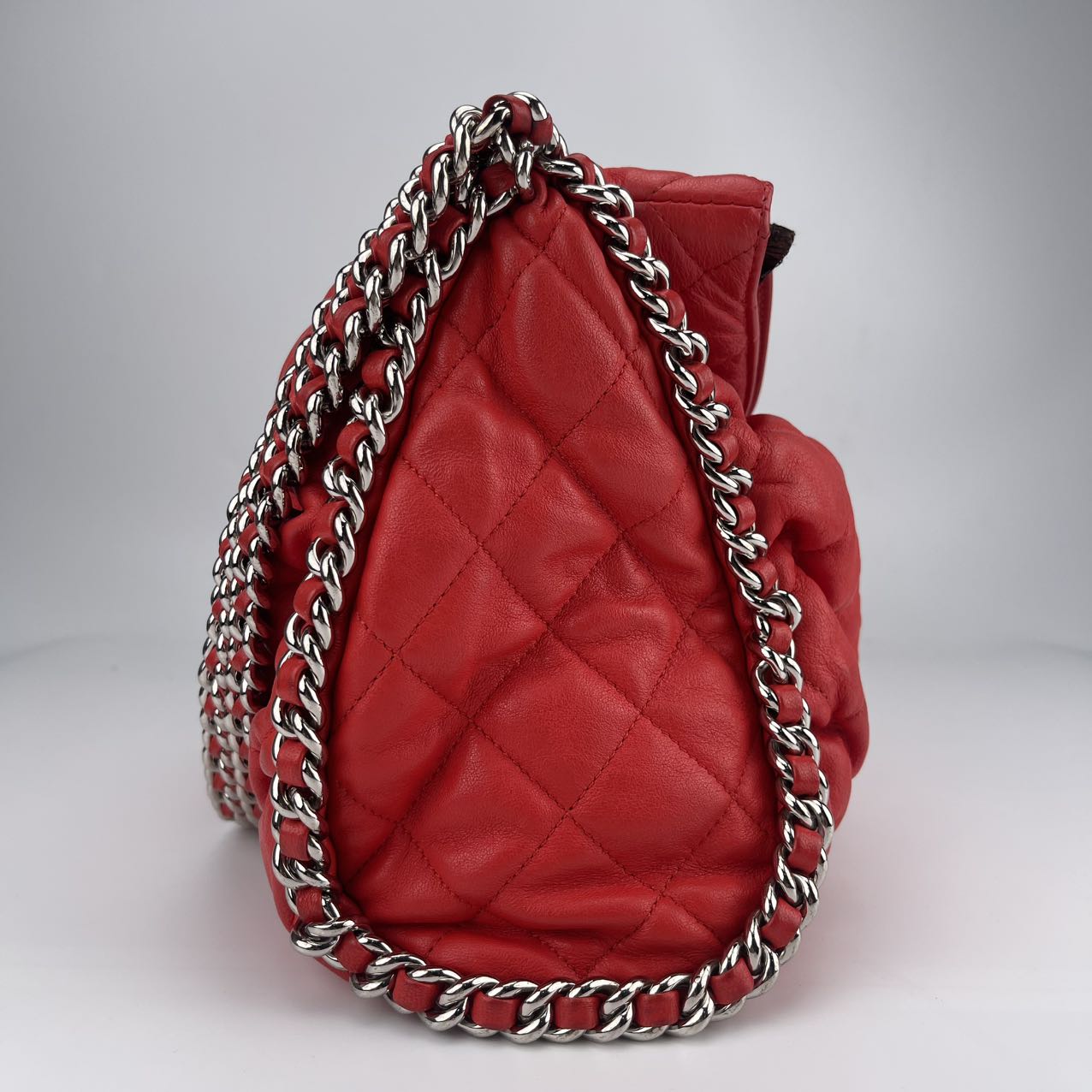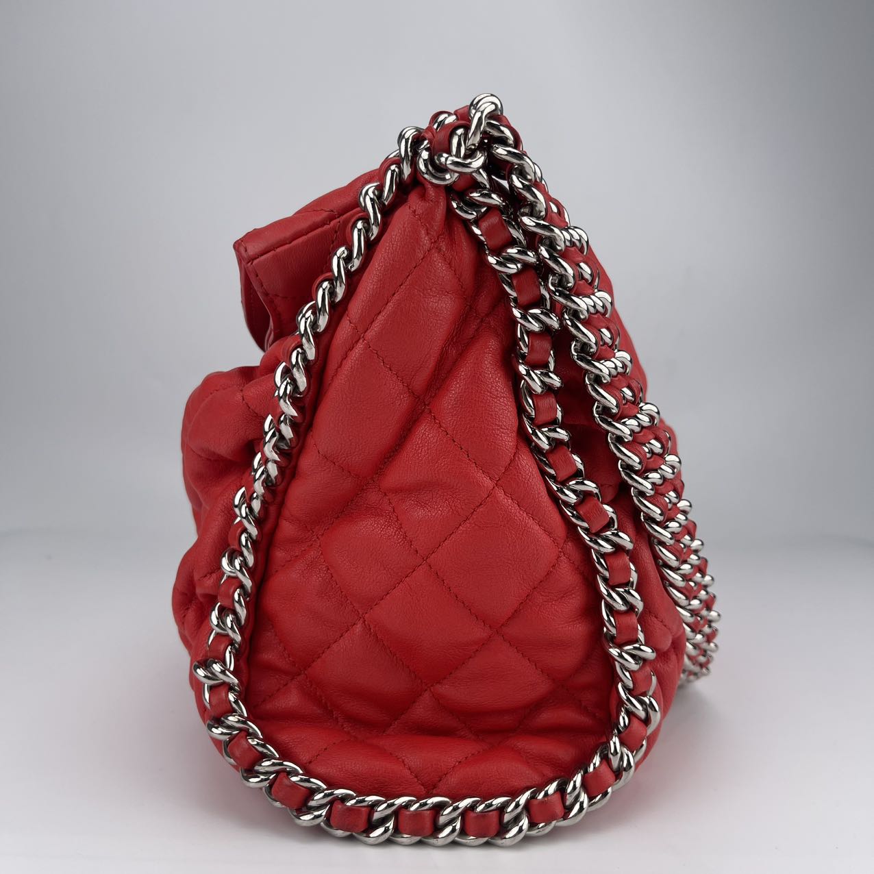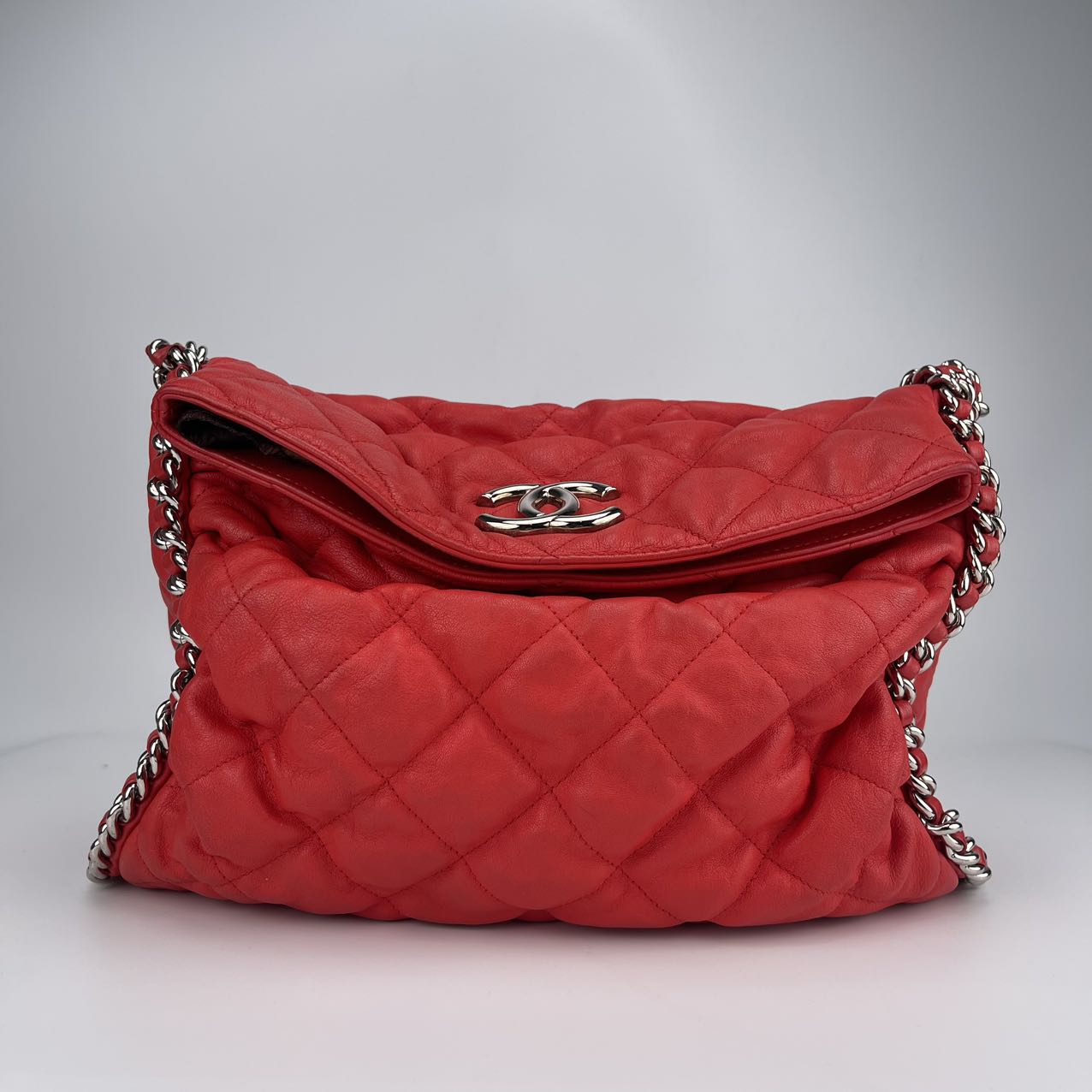 Name: Chanel Red Calfskin Leather Edge Detail Multi-Chain Airport Bag