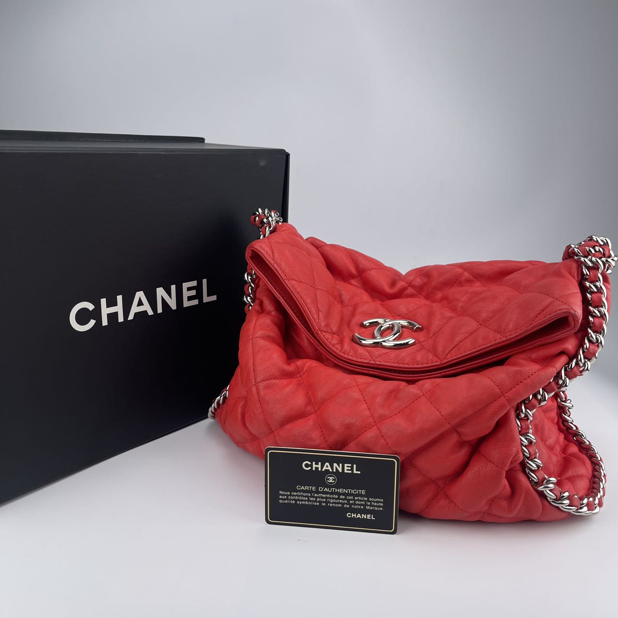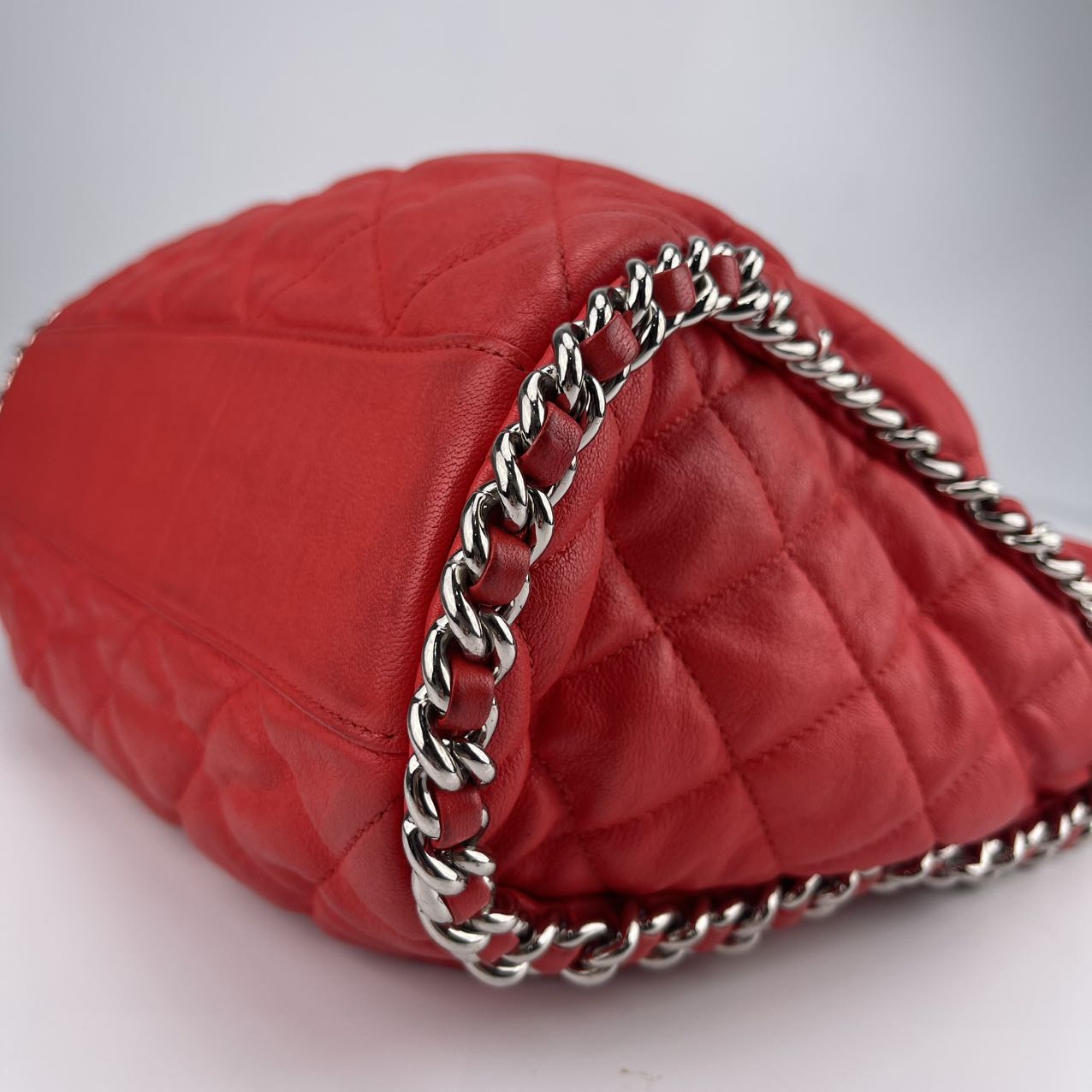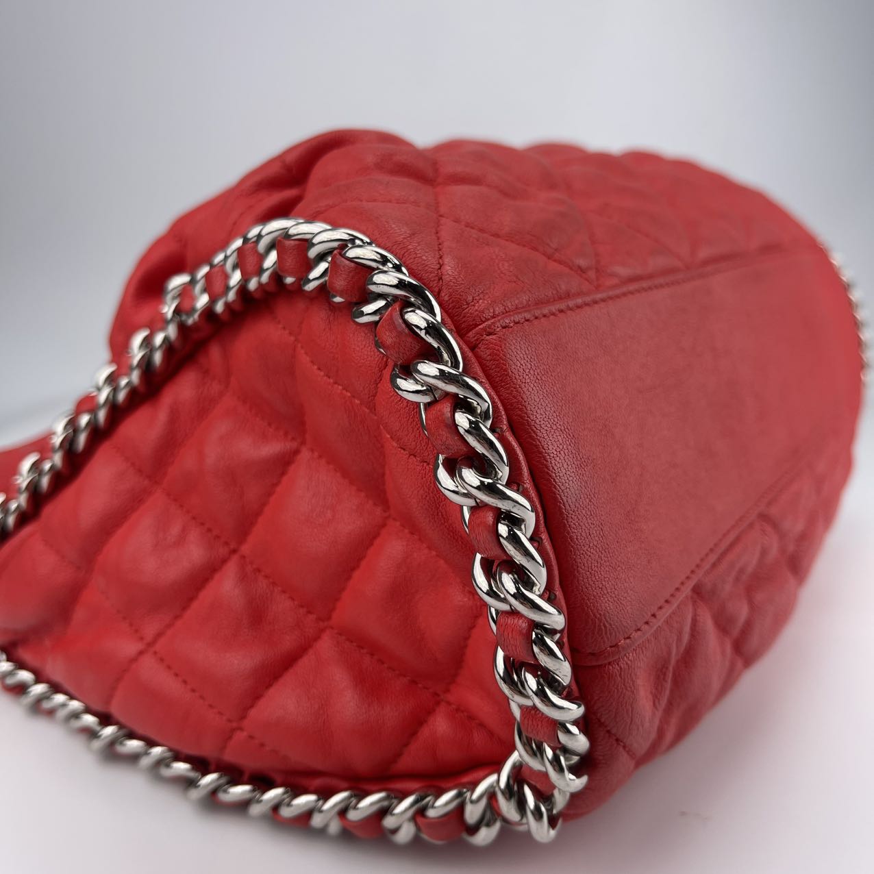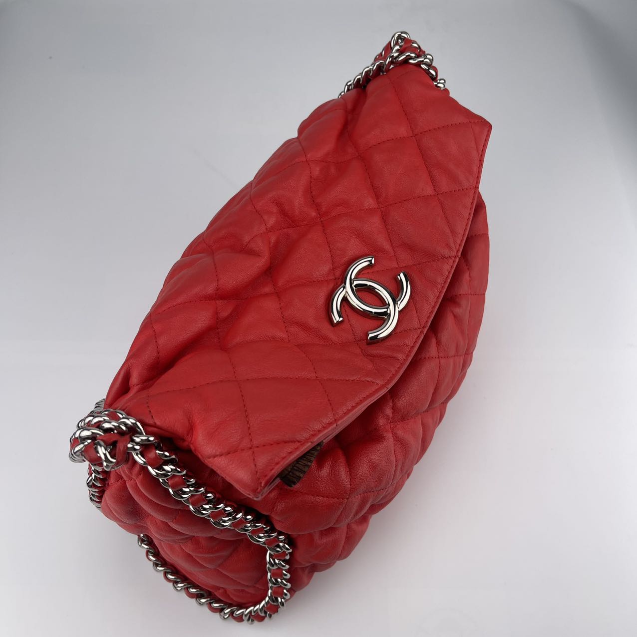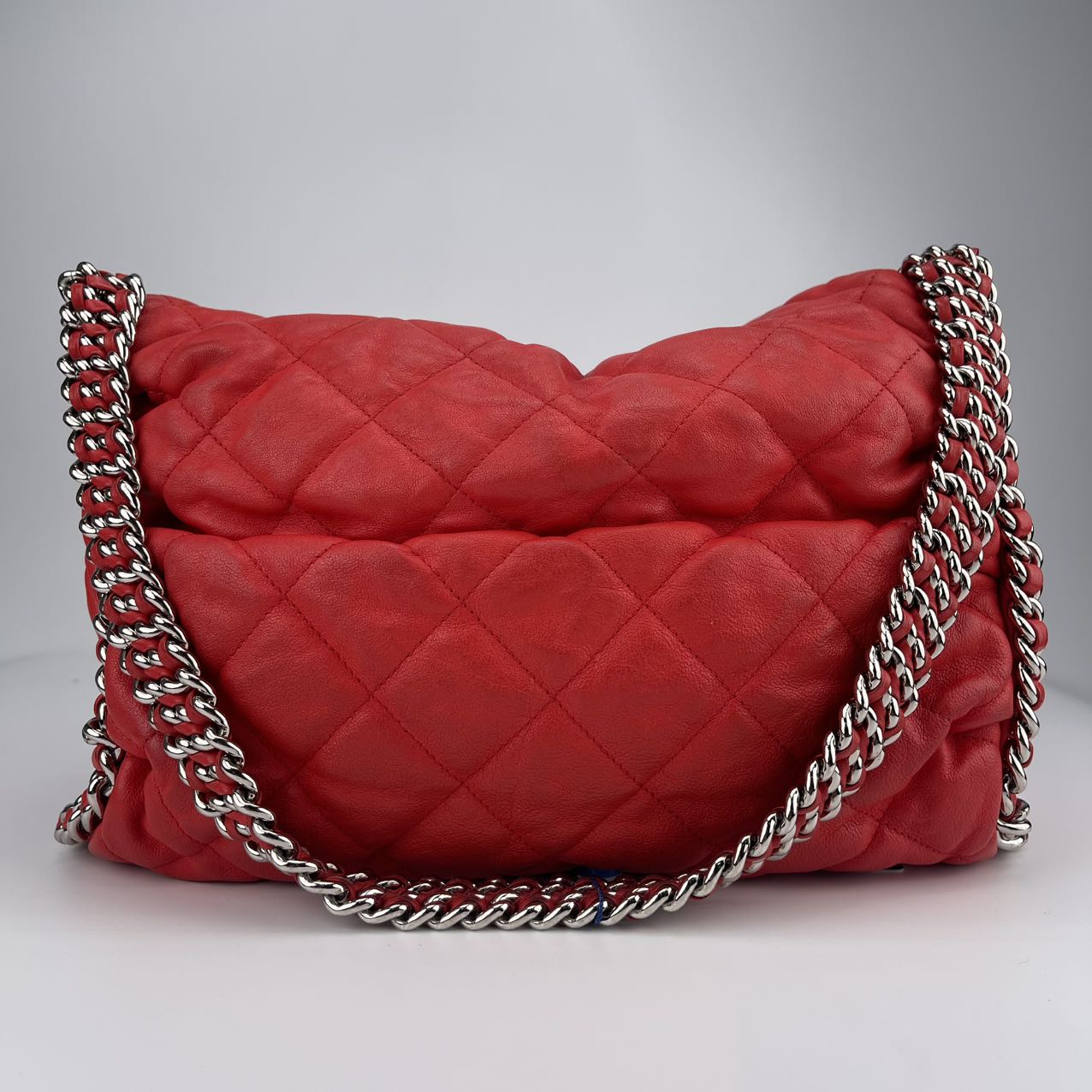 Name: Chanel Red Calfskin Leather Edge Detail Multi-Chain Airport Bag