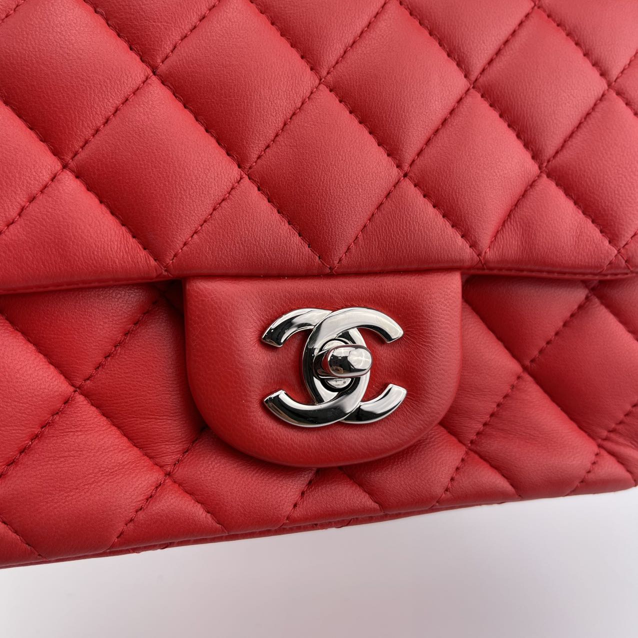 Hardware: Silver-tone hardware, offering a clean and elegant contrast to the vibrant red leather.