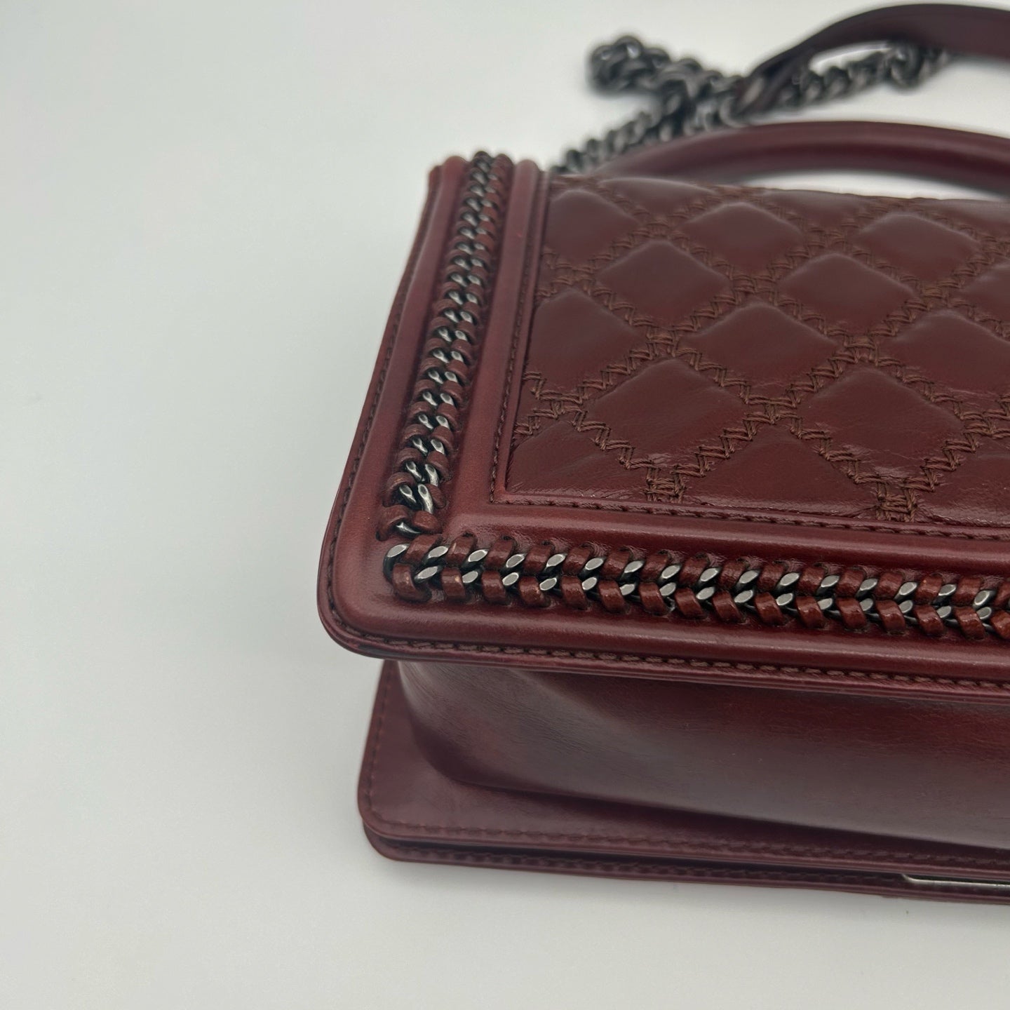 Chanel Salzburg Limited Edition Burgundy Calfskin Le Boy Shoulder Bag [Used]