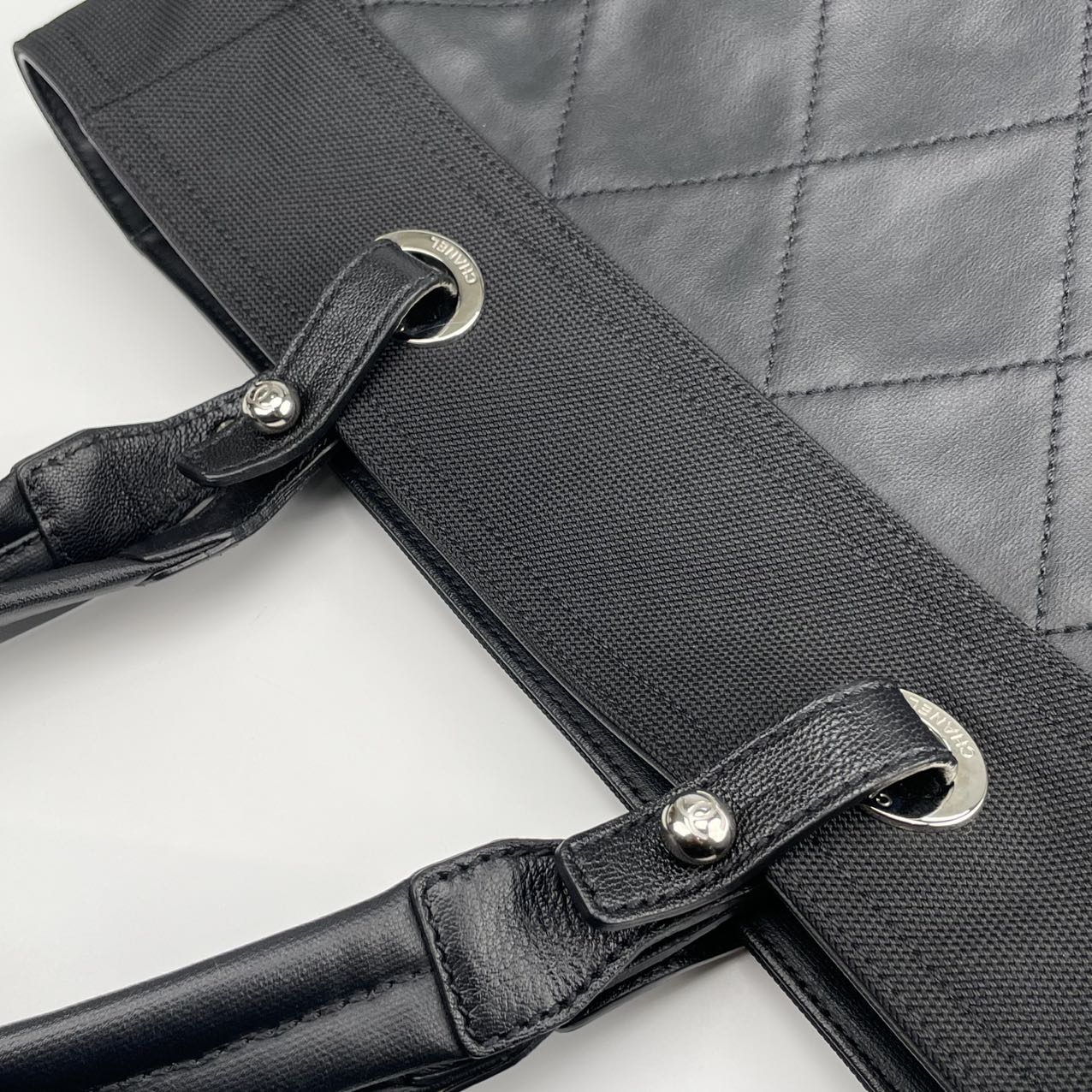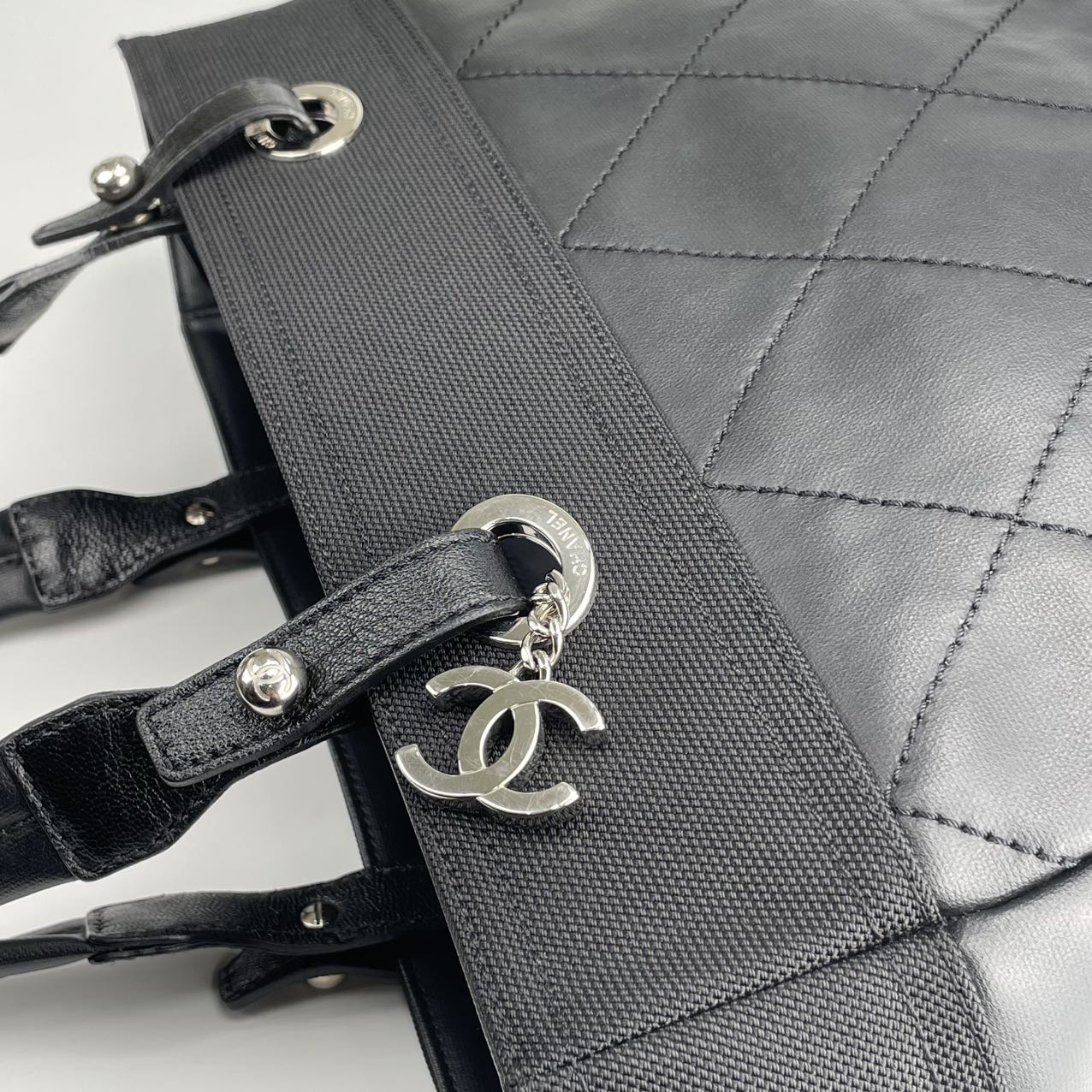 Material: Canvas & Leather — durable black canvas paired with smooth leather trim for a functional yet refined look. This combination offers a lightweight feel with classic Chanel structure and elegance.