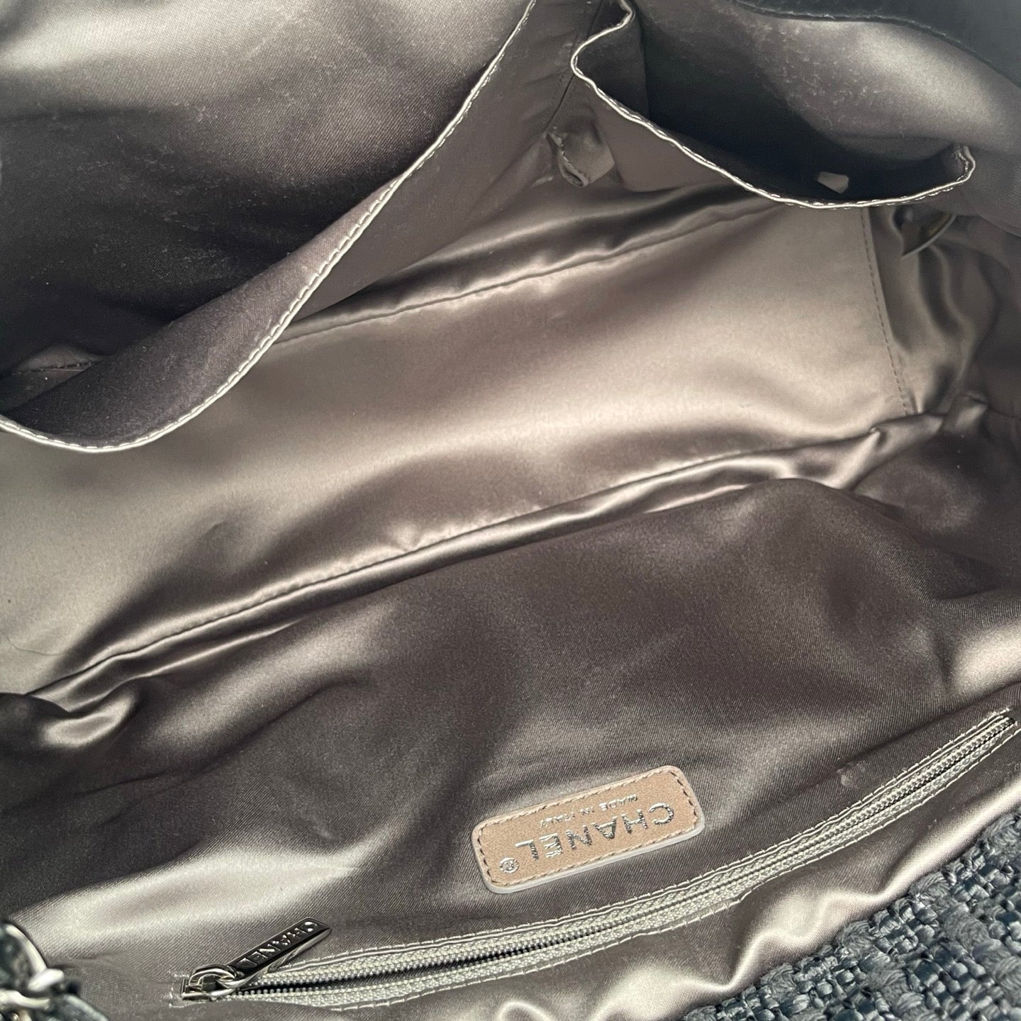 This bag is in good pre-owned condition with normal signs of use. The tweed flap remains well-preserved with clear texture, and the waxed calfskin leather maintains its sheen and durability. Hardware is intact and functional. The interior shows light usage consistent with wear, and the overall structure remains solid and well-shaped. A stylish and practical CHANEL piece suitable for everyday wear.