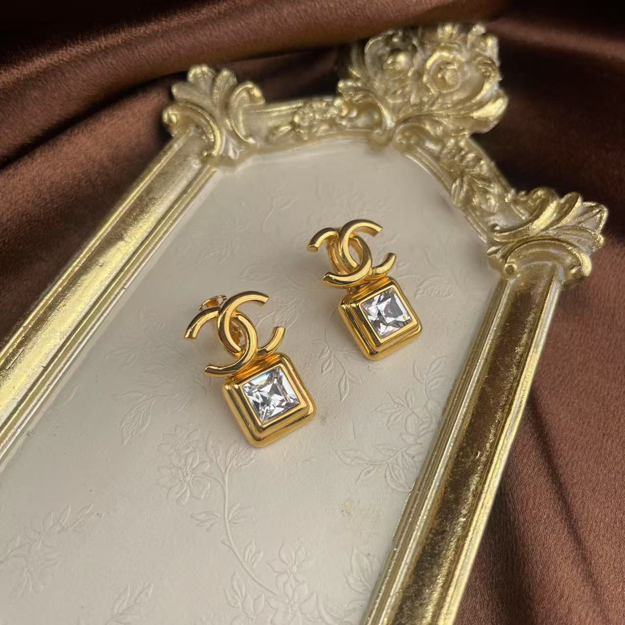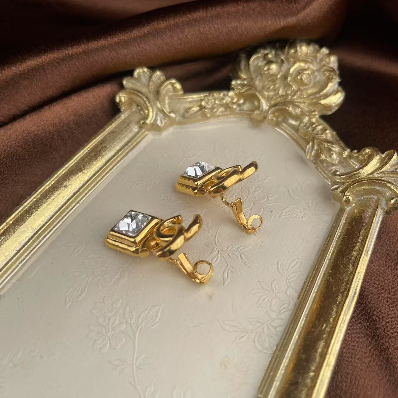 CHANEL Vintage Crystal Drop Clip-on Earrings[Used]