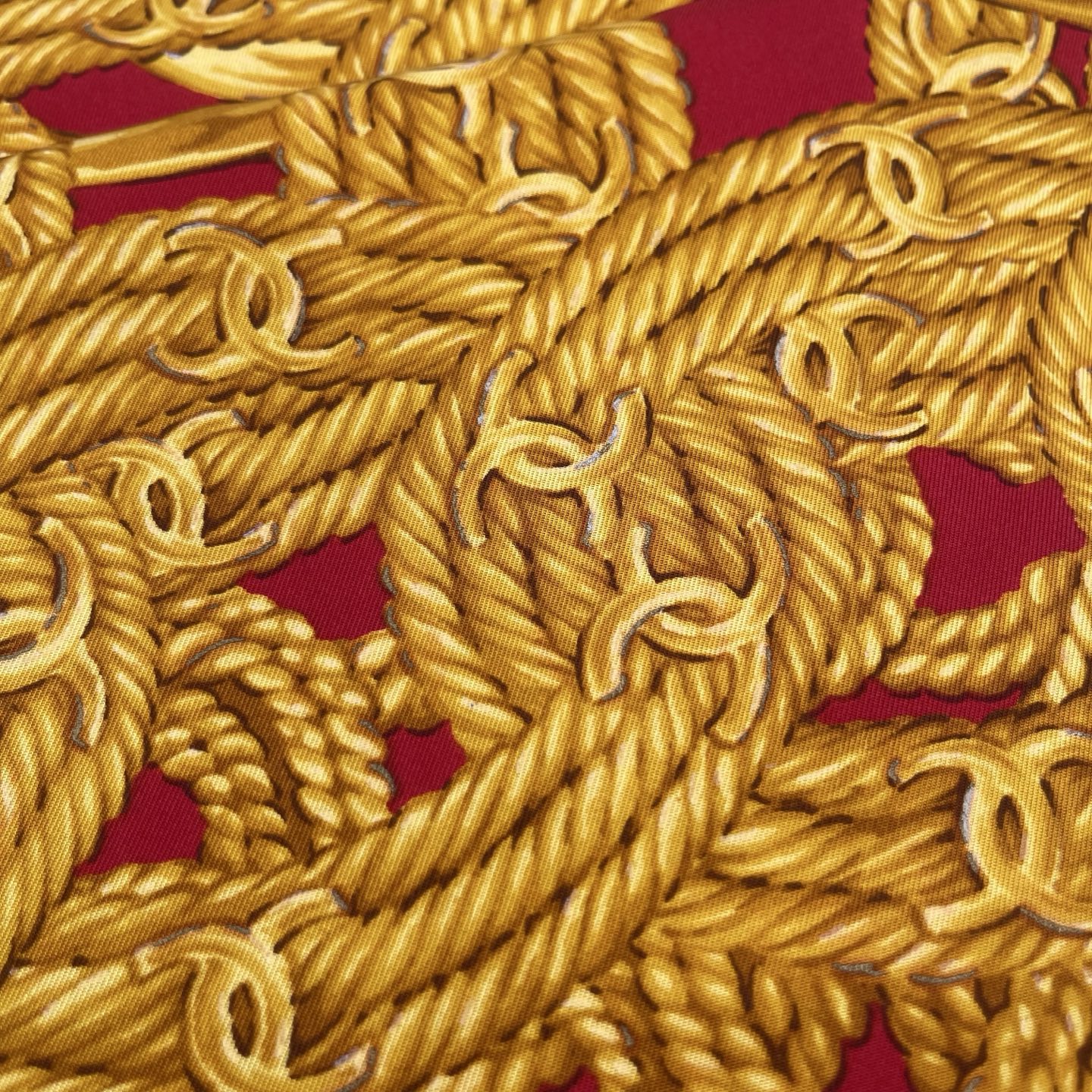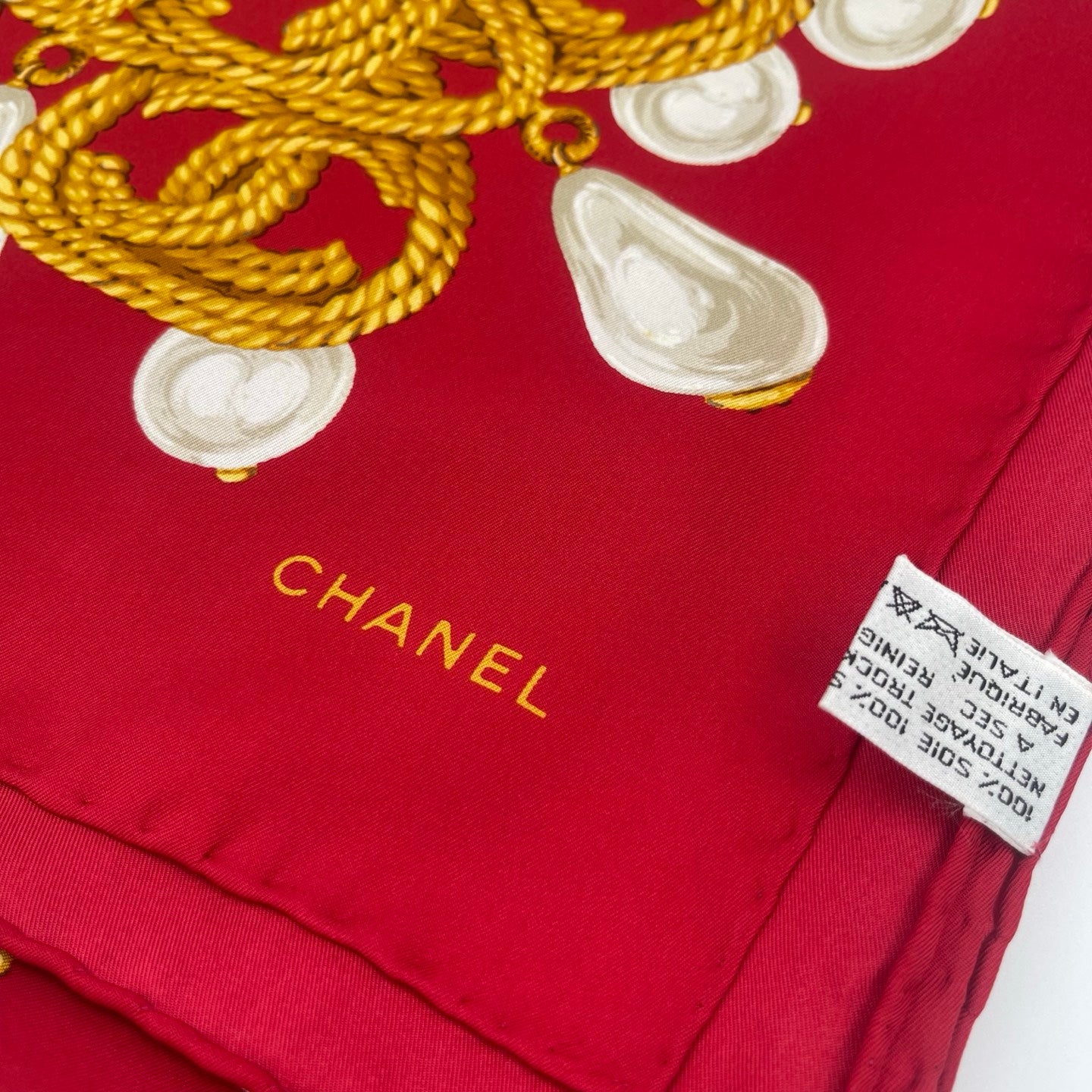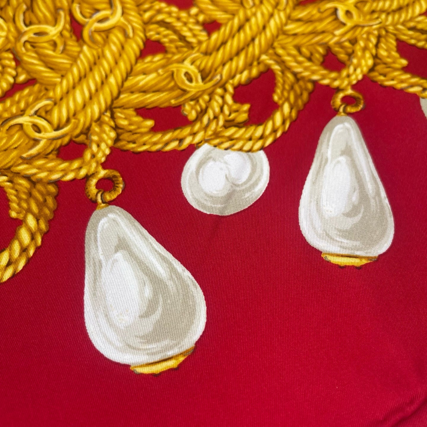 Chanel Vintage Red Pearl & Twisted Gold CC Silk Scarf [Used]