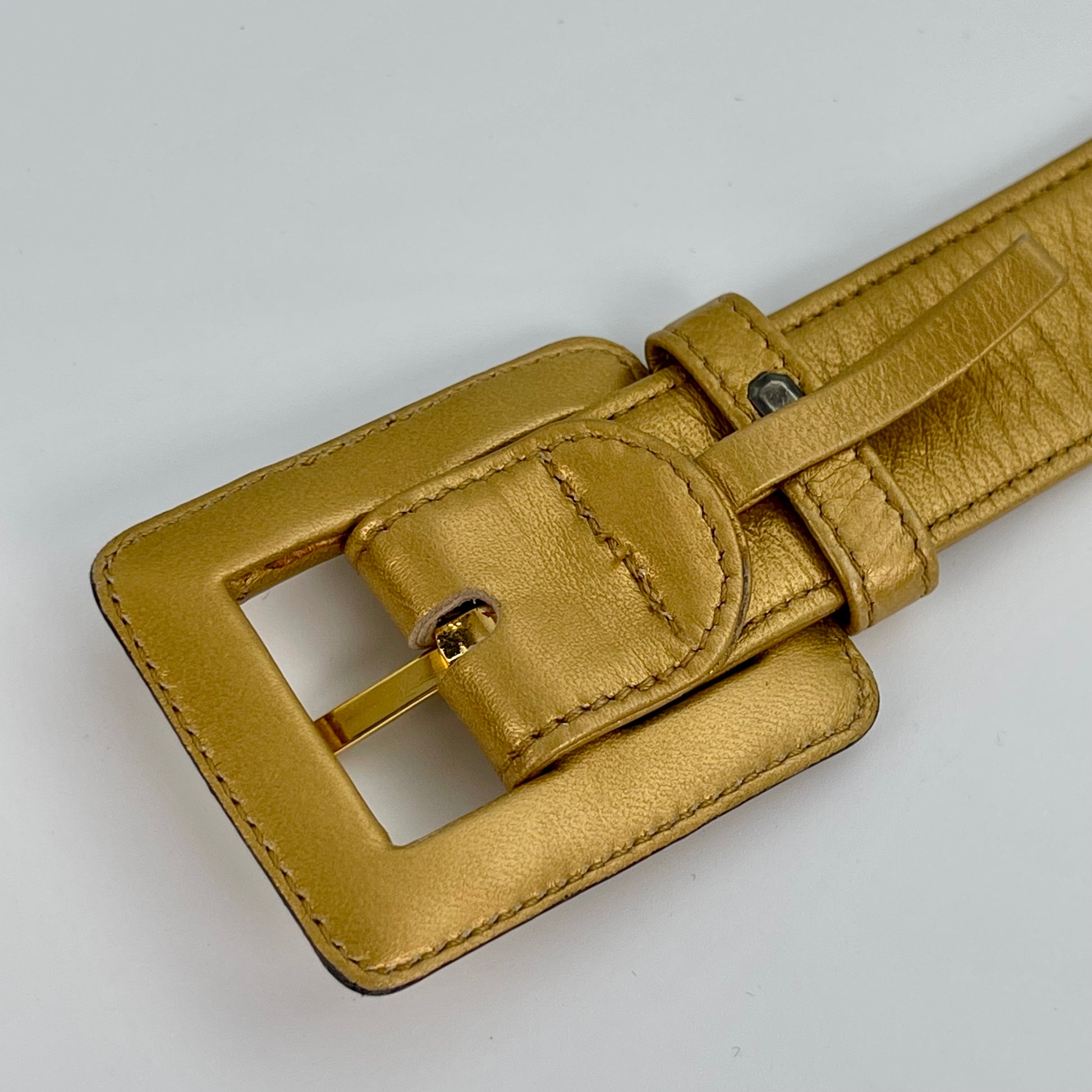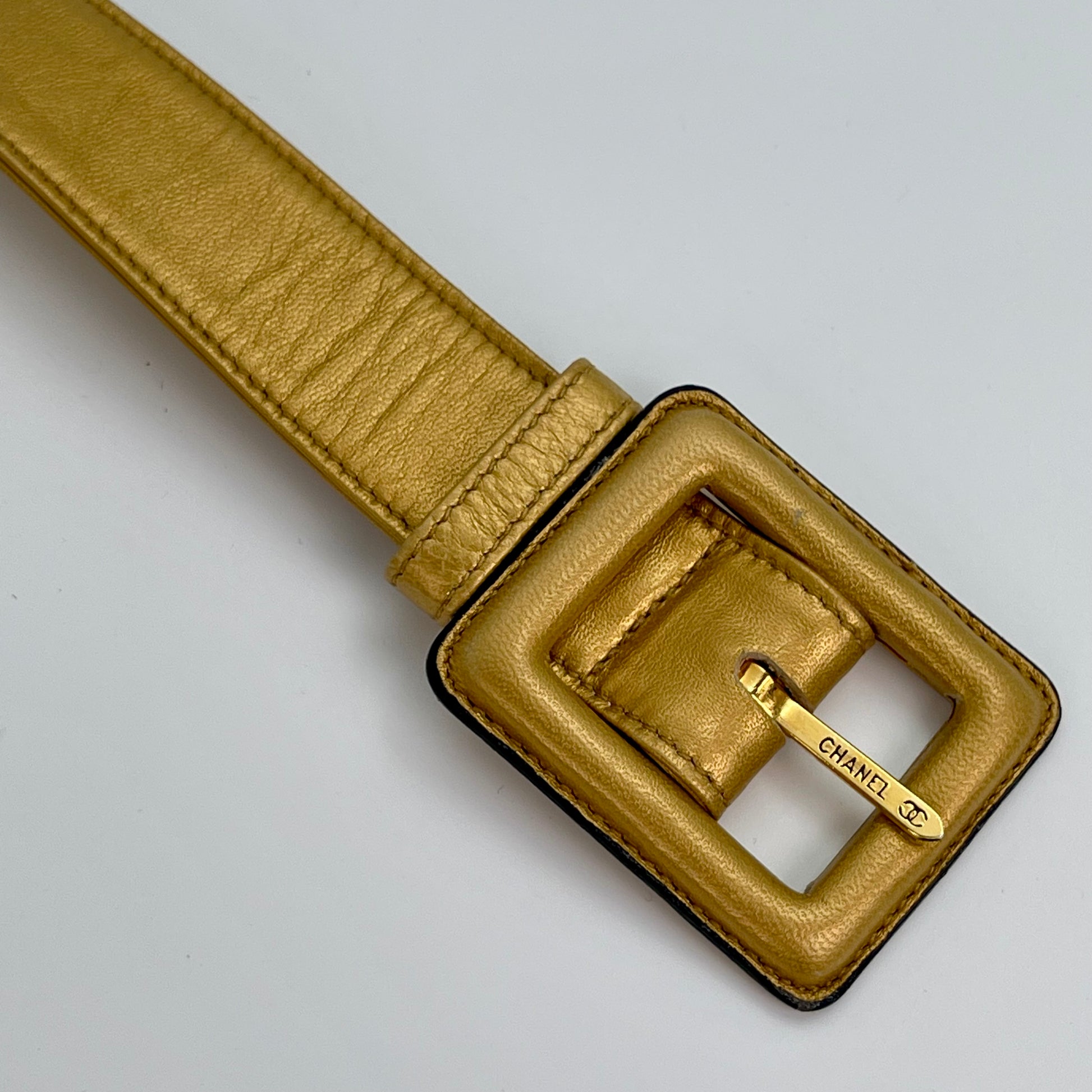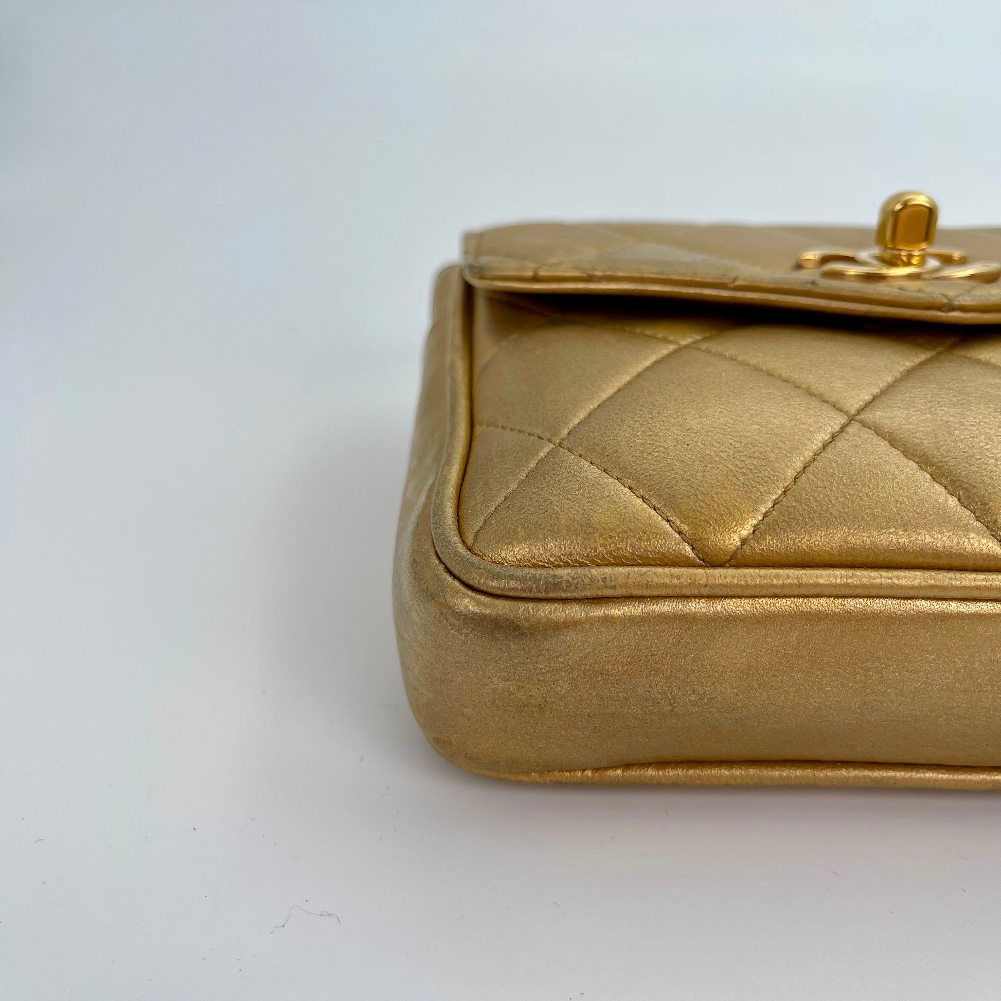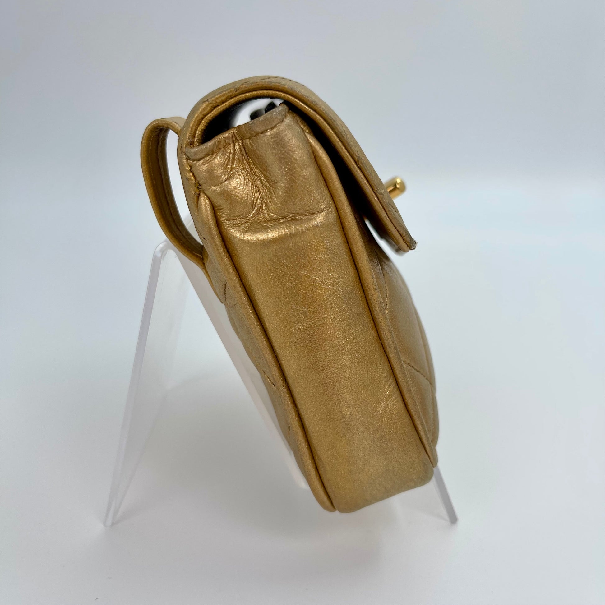 Chic and compact Chanel waist bag in metallic gold lambskin.