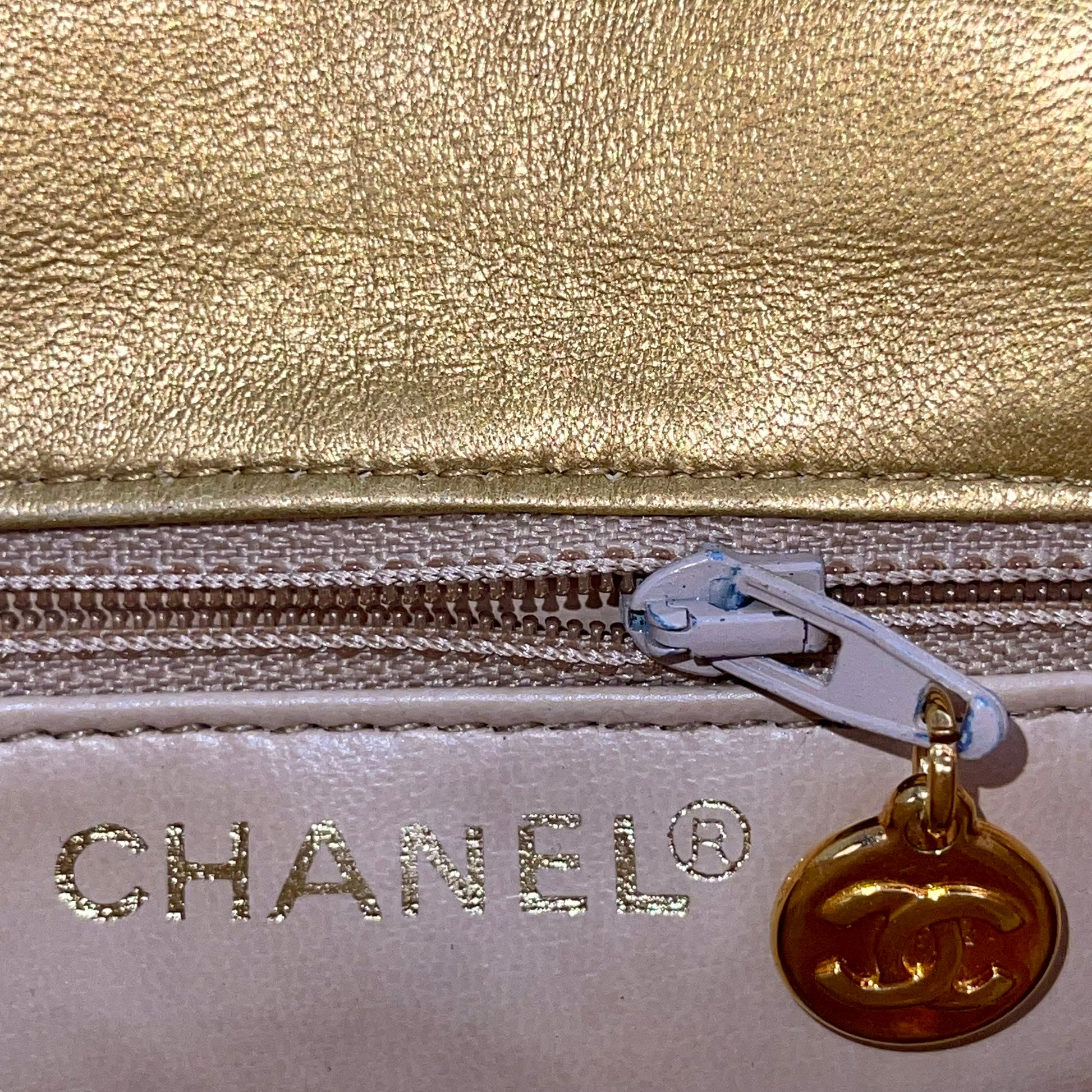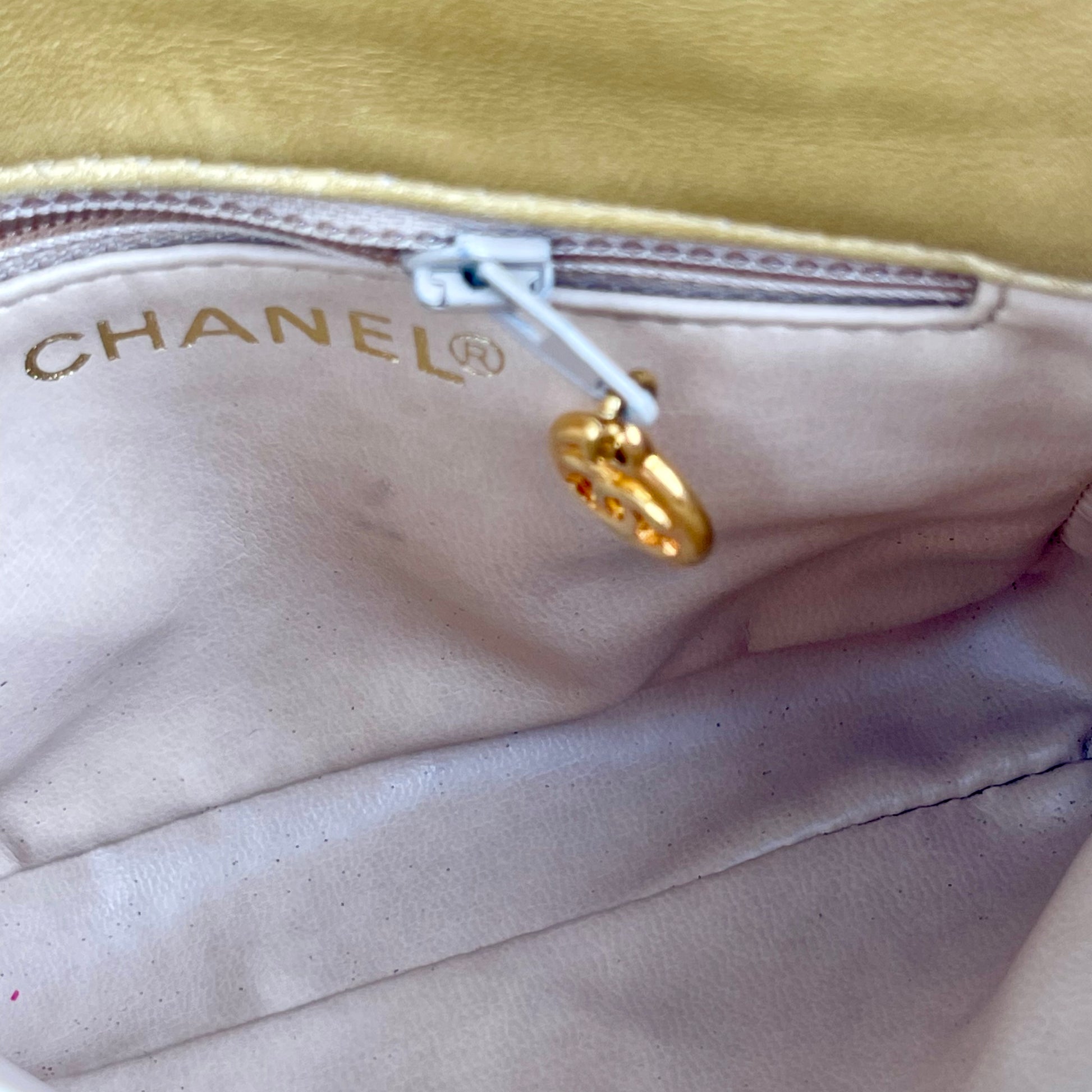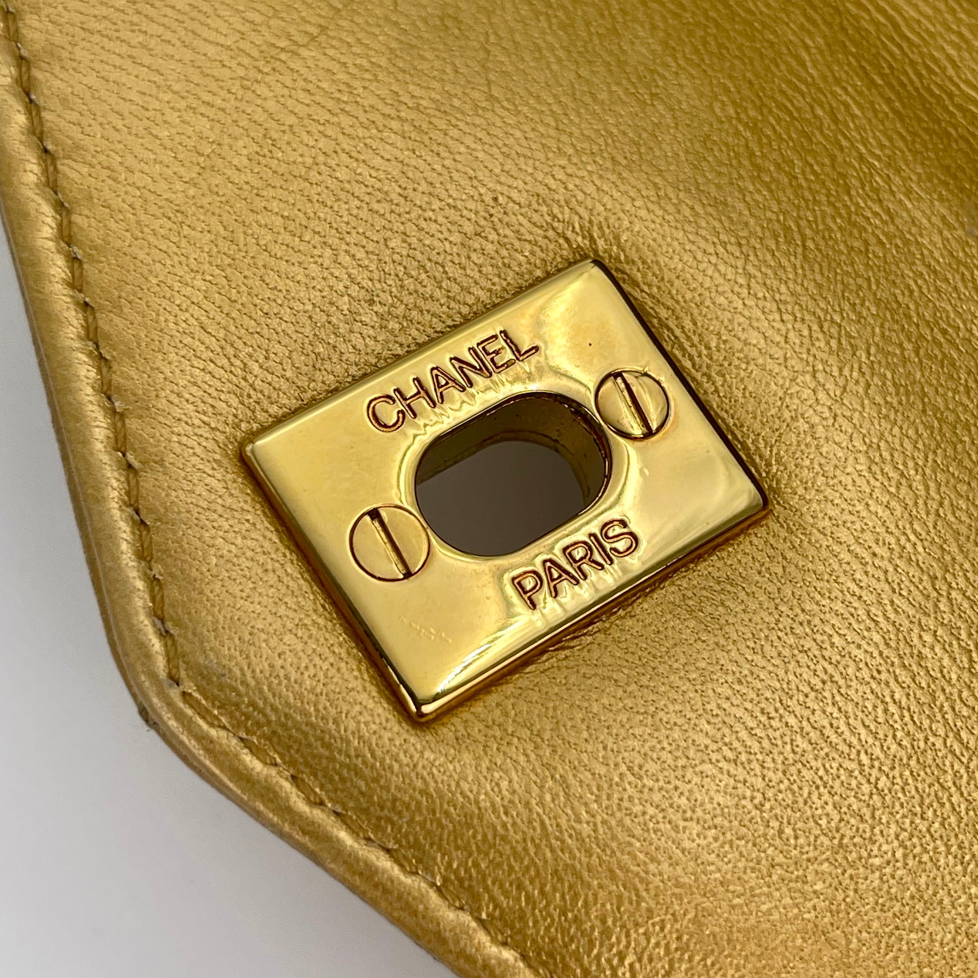 Material: Lambskin — luxurious and soft, with a radiant gold finish that adds a bold and elegant touch. Chanel lambskin is known for its smooth texture and refined appearance.
