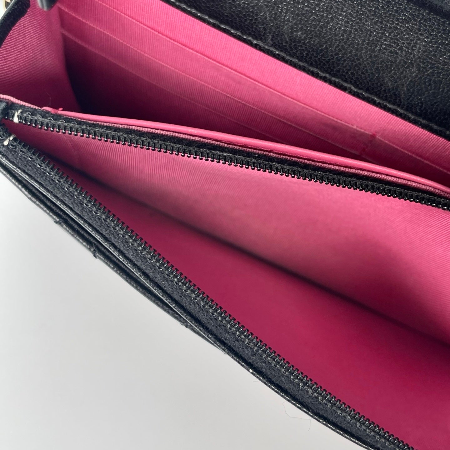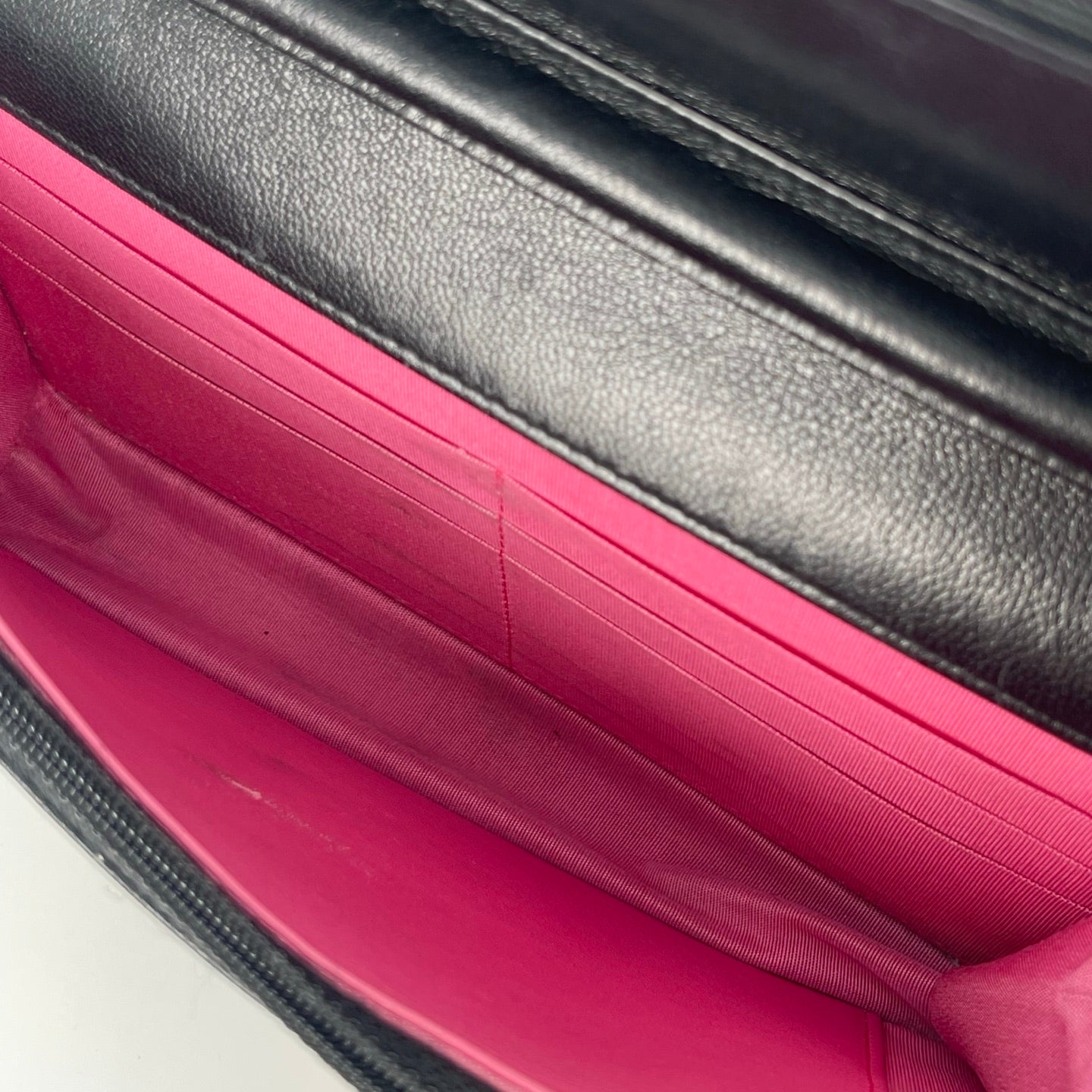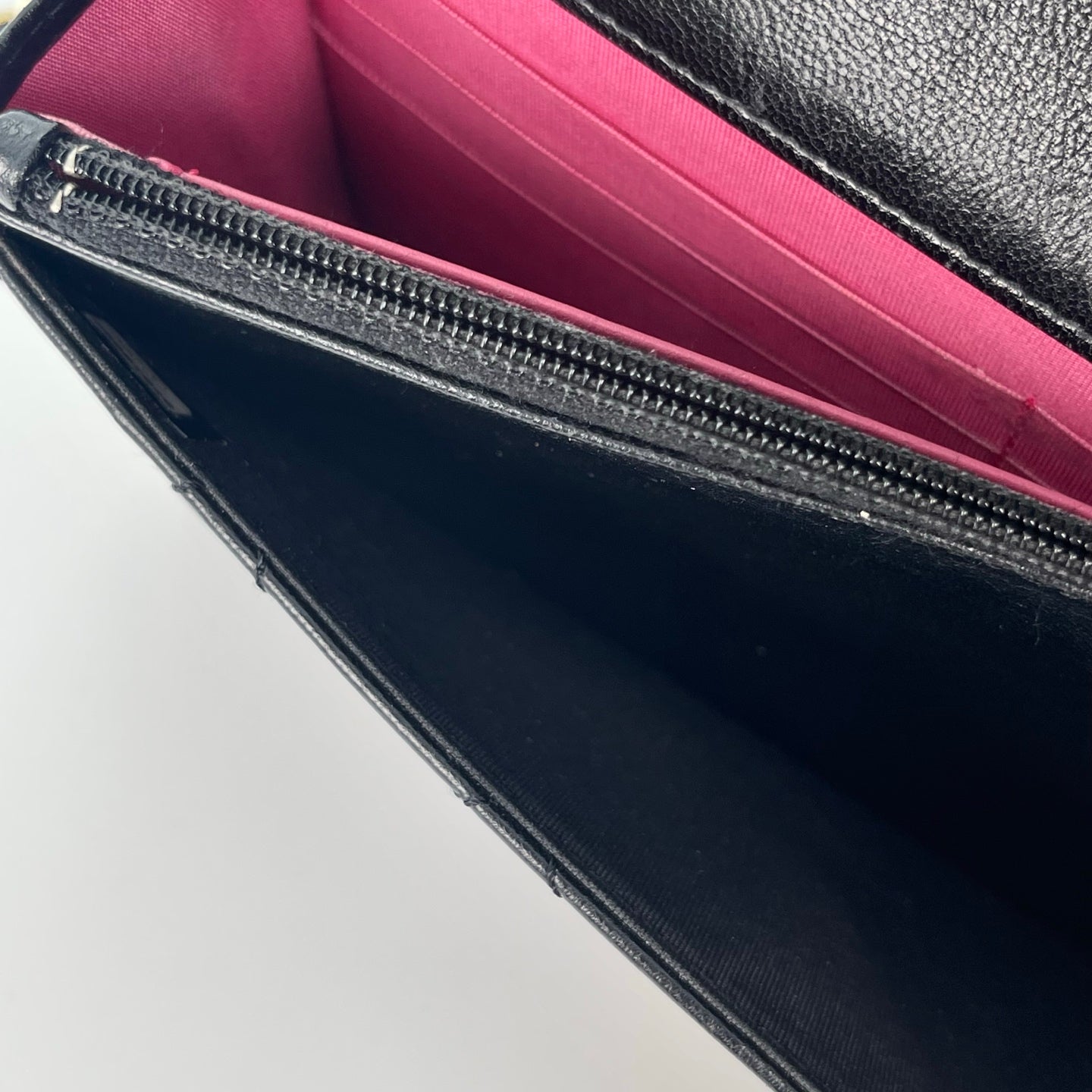 This elegant CHANEL Wallet on Chain (WOC) features luxurious black lambskin leather with signature diamond quilting and a gold-tone “lucky” chain detail. The bag is in excellent pre-owned condition, showing minimal signs of gentle use.