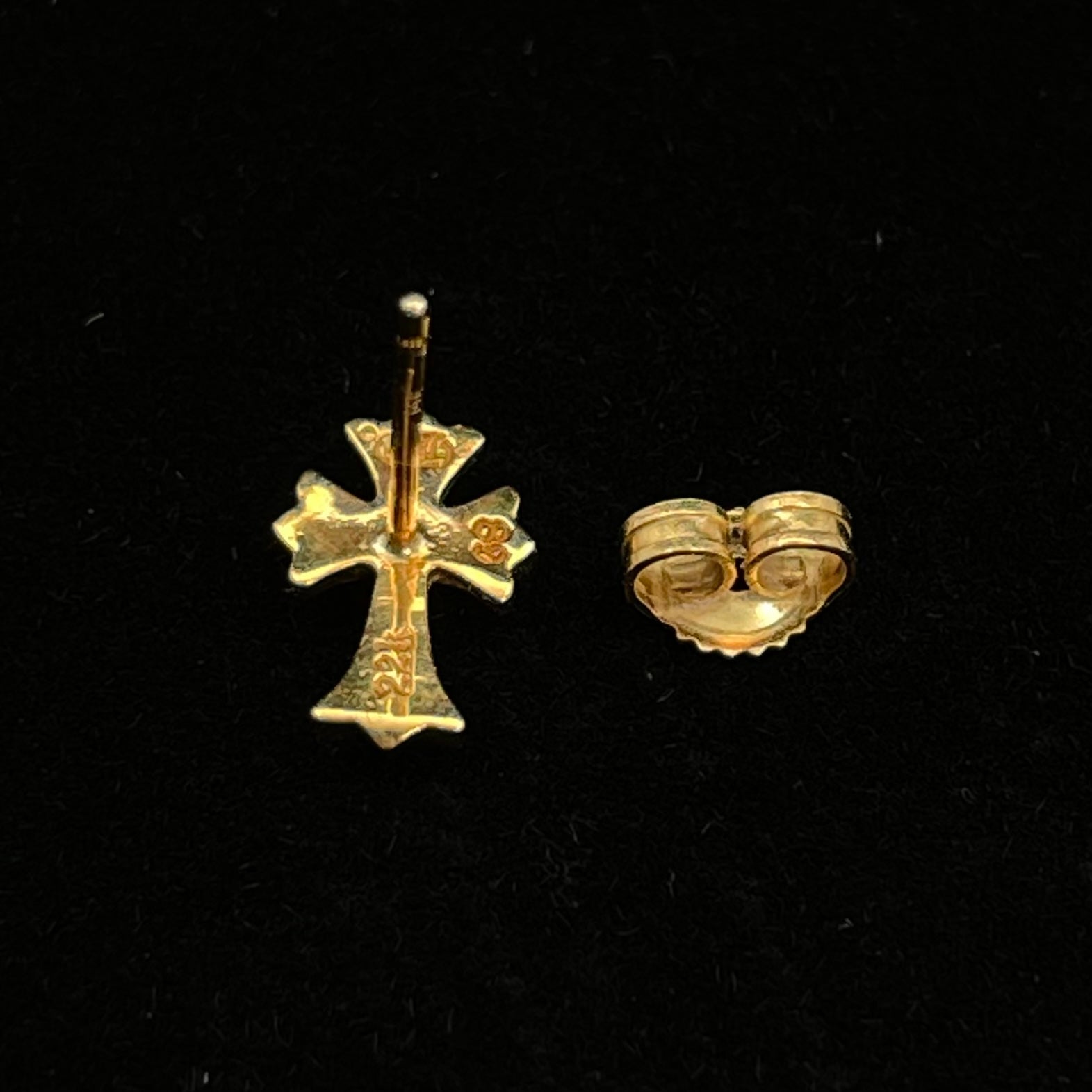 This Chrome Hearts single stud earring features the brand’s iconic cross motif crafted in luxurious 22K gold, set with genuine diamonds that add refined brilliance and depth to the design. The compact size highlights the intricate detailing while maintaining a strong and recognizable Chrome Hearts aesthetic.