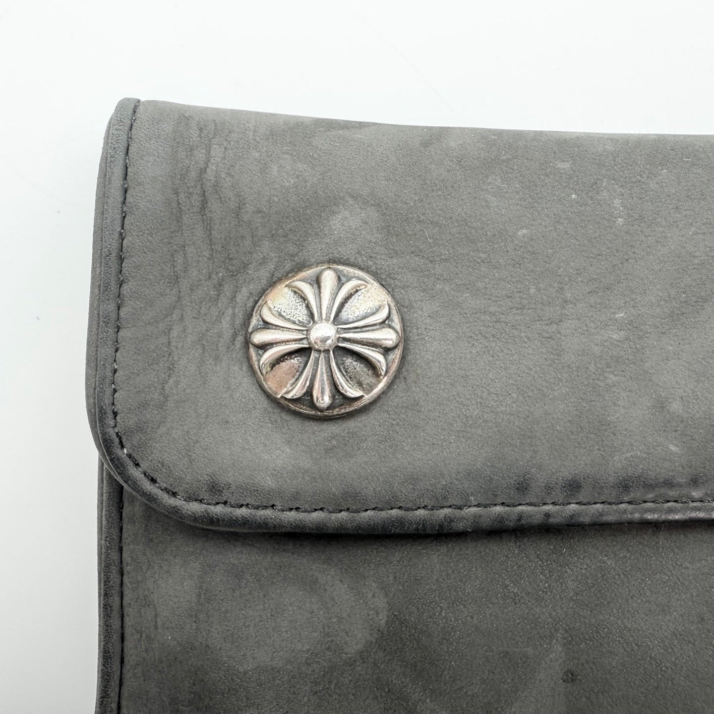 Chrome Hearts Grey Suede Leather Trifold Long Wallet with Cross Snap [Used]