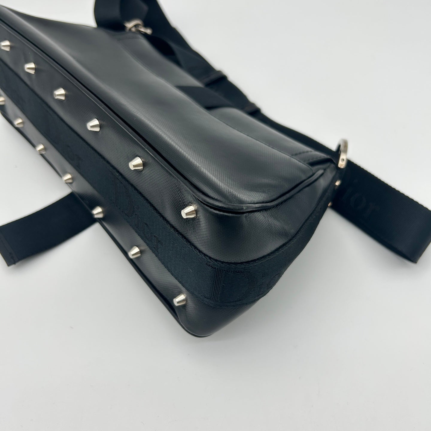Dior Black Leather and Canvas Shoulder Bag Silver Hardware [Used]