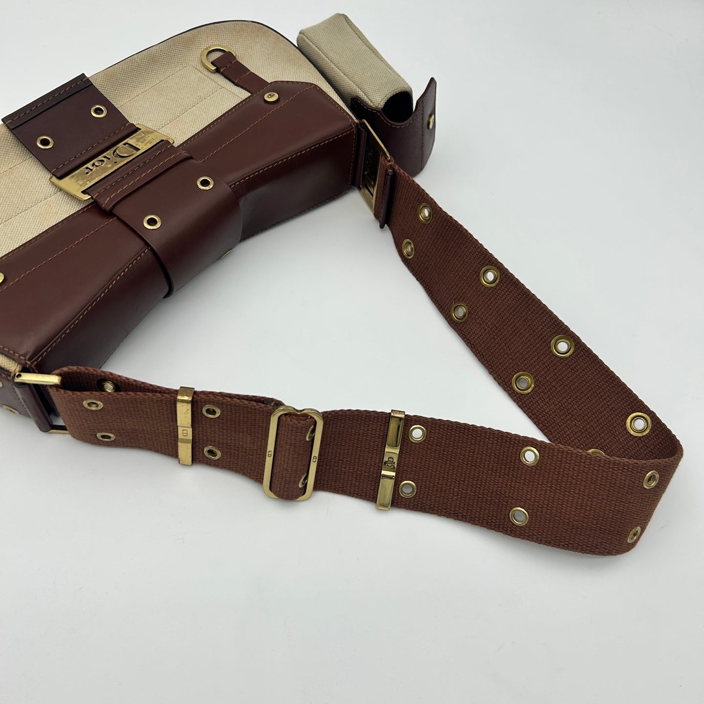 Dior Brown&Beige Punk Motorcycle Canvas and Leather Shoulder Bag with Pouch [Used]