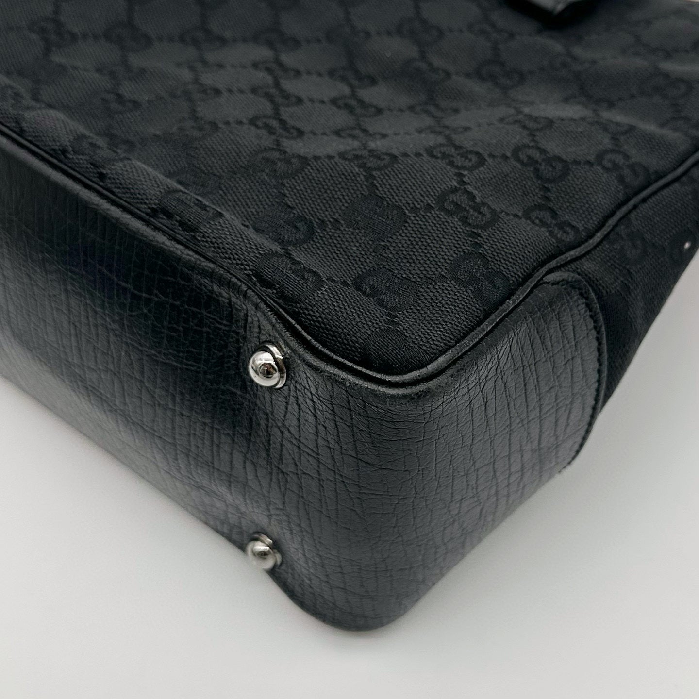 Gucci Black GG Canvas Bamboo Handle Tote Bag with Leather Trim [Used]