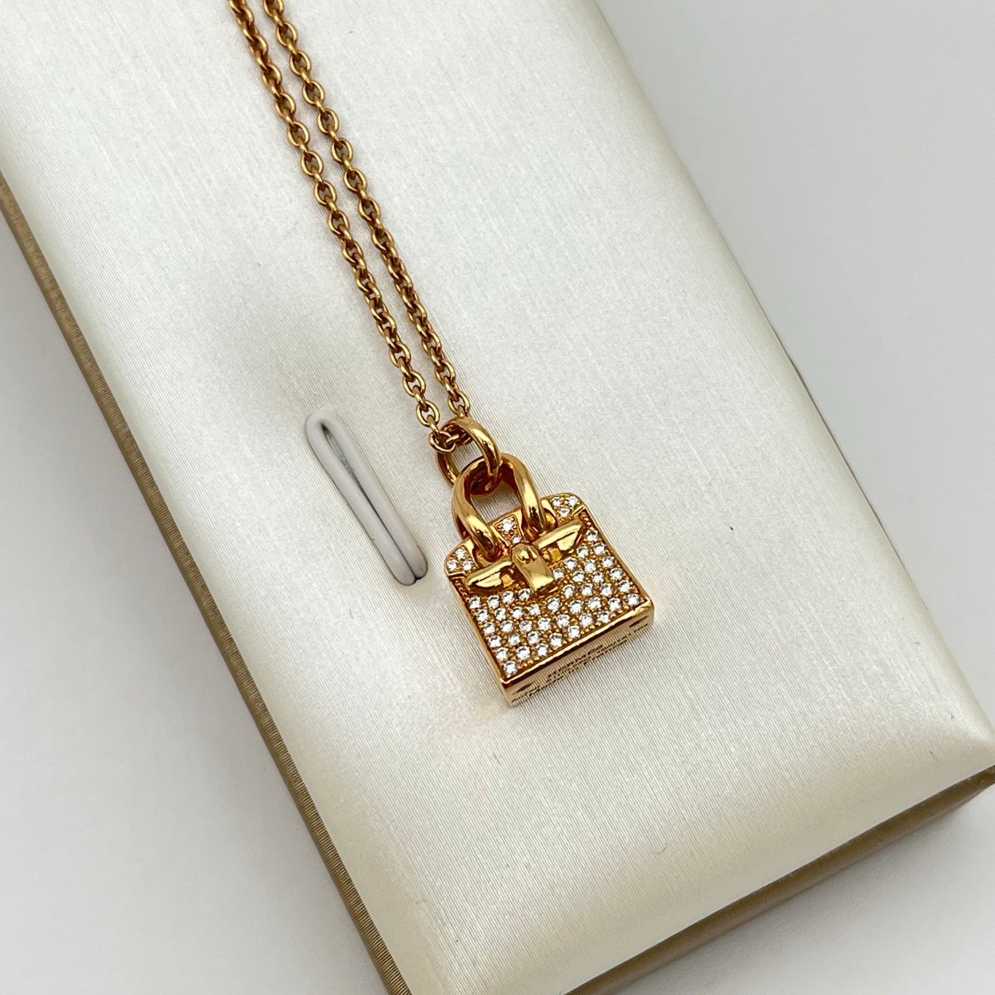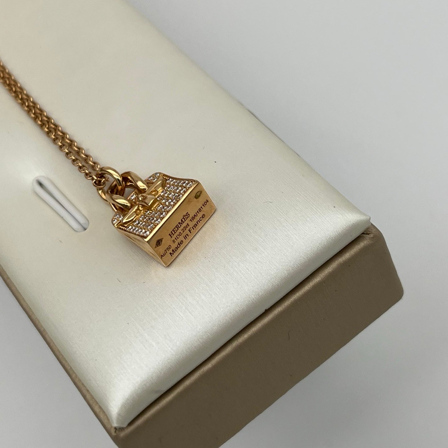 Hermès Birkin Pendant Necklace Diamond-Set 18K Rose Gold [Used]