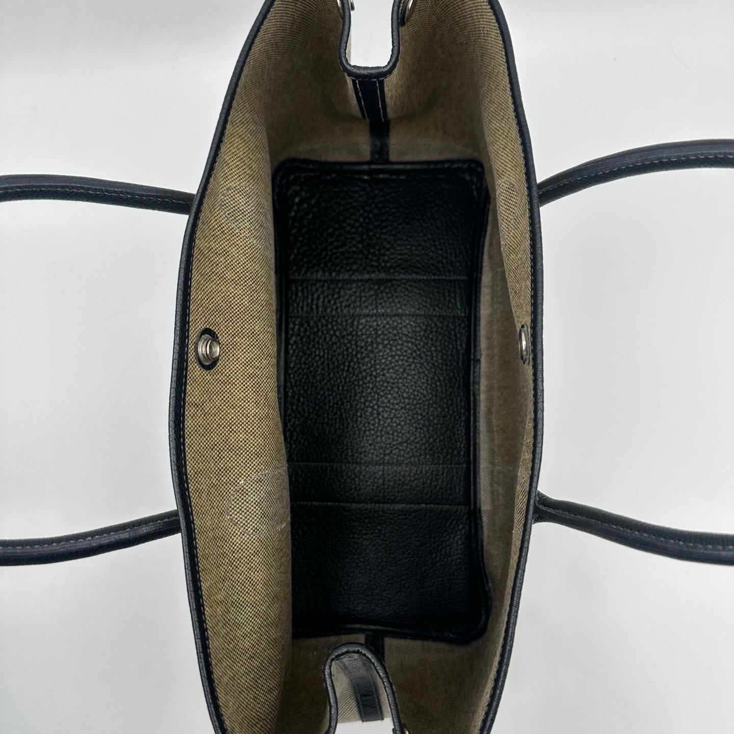 This Hermès Garden Party 36 features a striking black and white “Panda” color combination, crafted in durable canvas for a clean and contemporary look. The classic open tote silhouette is complemented by sturdy handles and subtle Palladium-tone hardware, reflecting Hermès’ understated elegance and functional design philosophy.