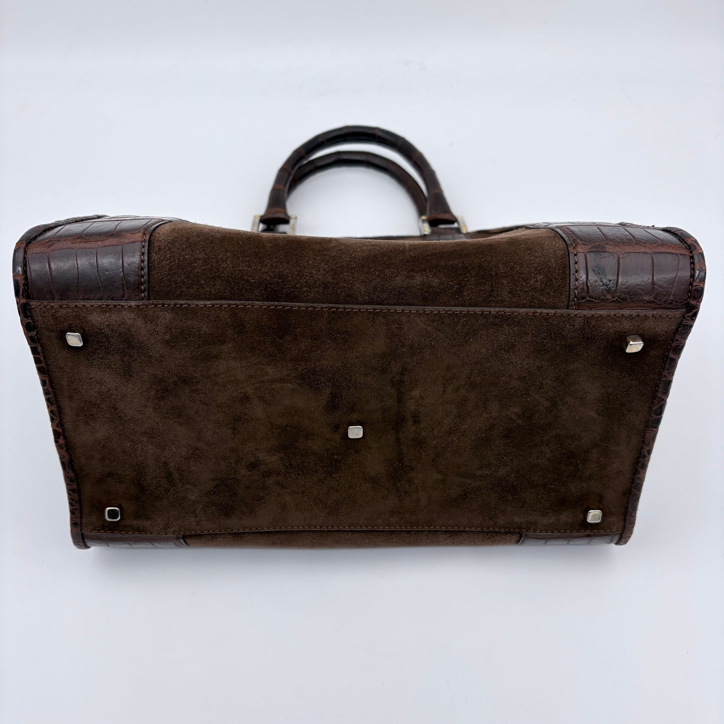 This bag is in good pre-owned condition with signs of wear consistent with normal use. The suede shows light surface wear typical of the material, while the croc-embossed leather remains well preserved. The structure is intact, and the hardware shows light signs of use. Overall, the bag presents well and remains fully functional.