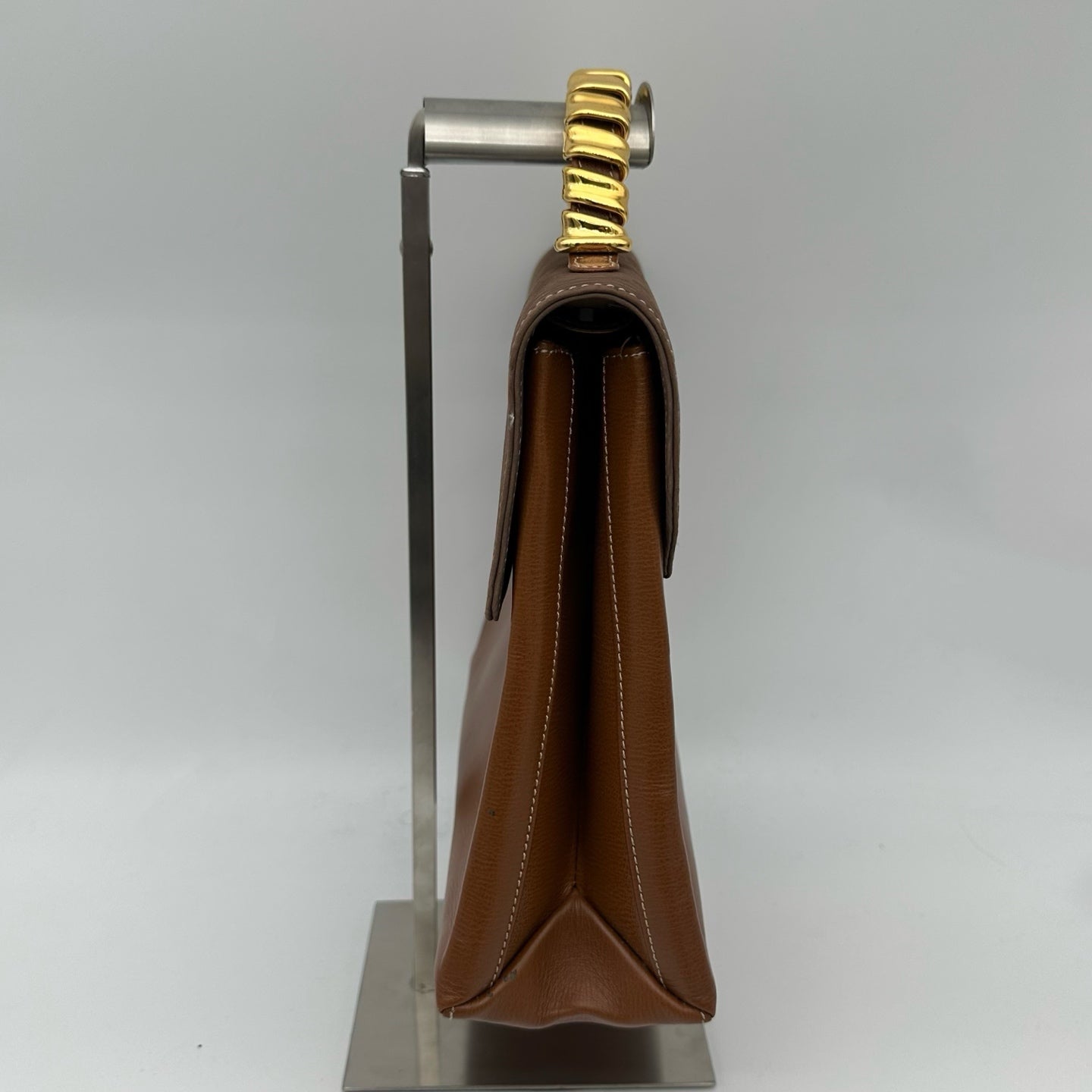 Loewe Kelly Style Structured Brown Calfskin Handbag Golden Handle [Used]