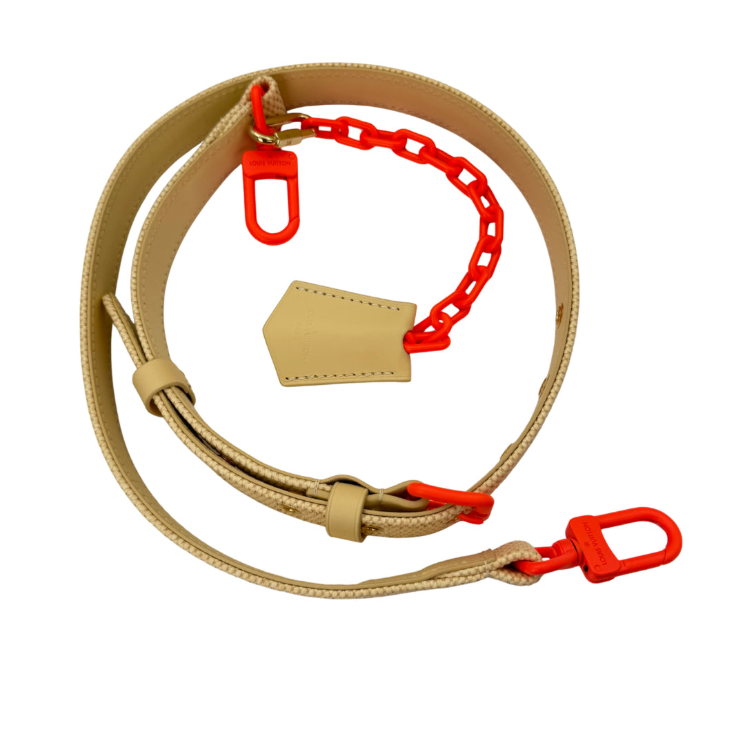 Spacious and edgy, the Keepall 50 is ideal for travel, offering ample room while remaining easy to carry by hand or over the shoulder with the detachable strap. The vibrant orange body and matching hardware create a highly eye-catching presence, making this piece both functional and statement-worthy. A rare and distinctive travel bag that reflects Louis Vuitton’s craftsmanship and creative expression.