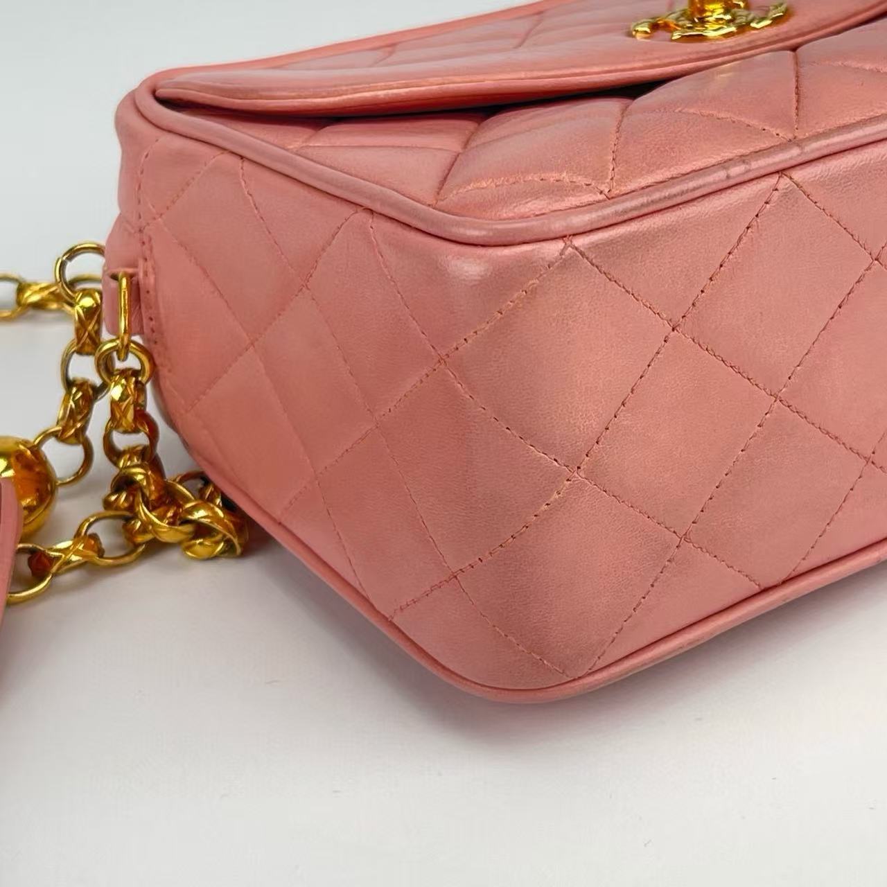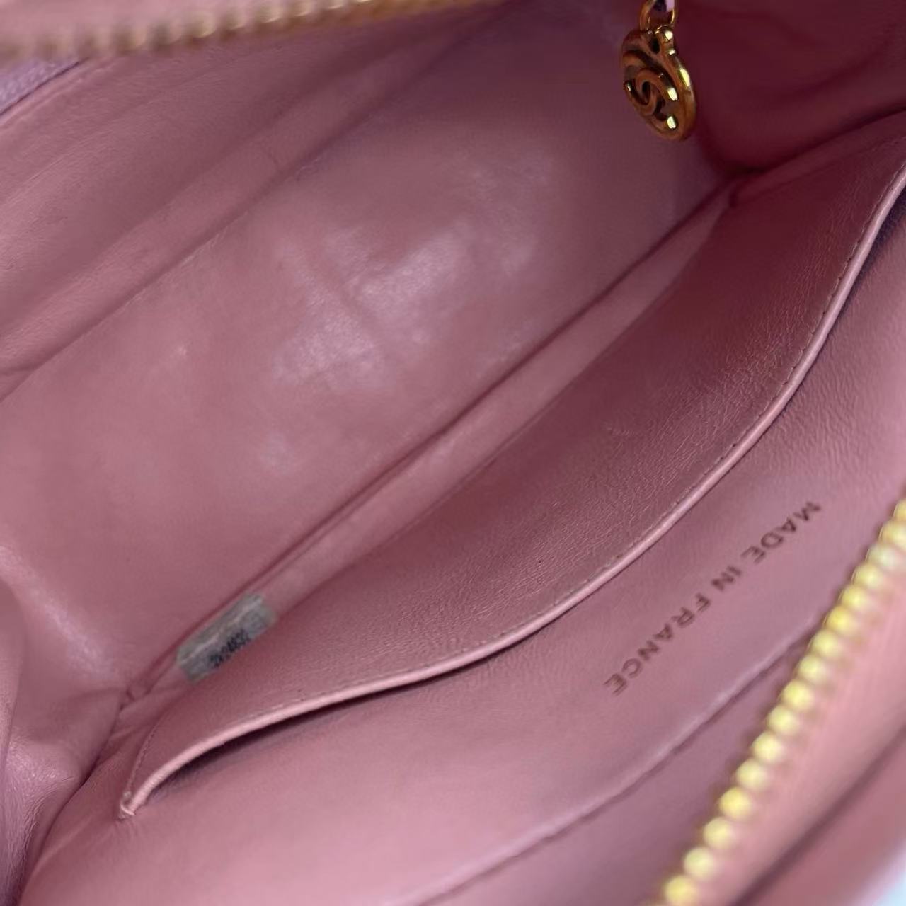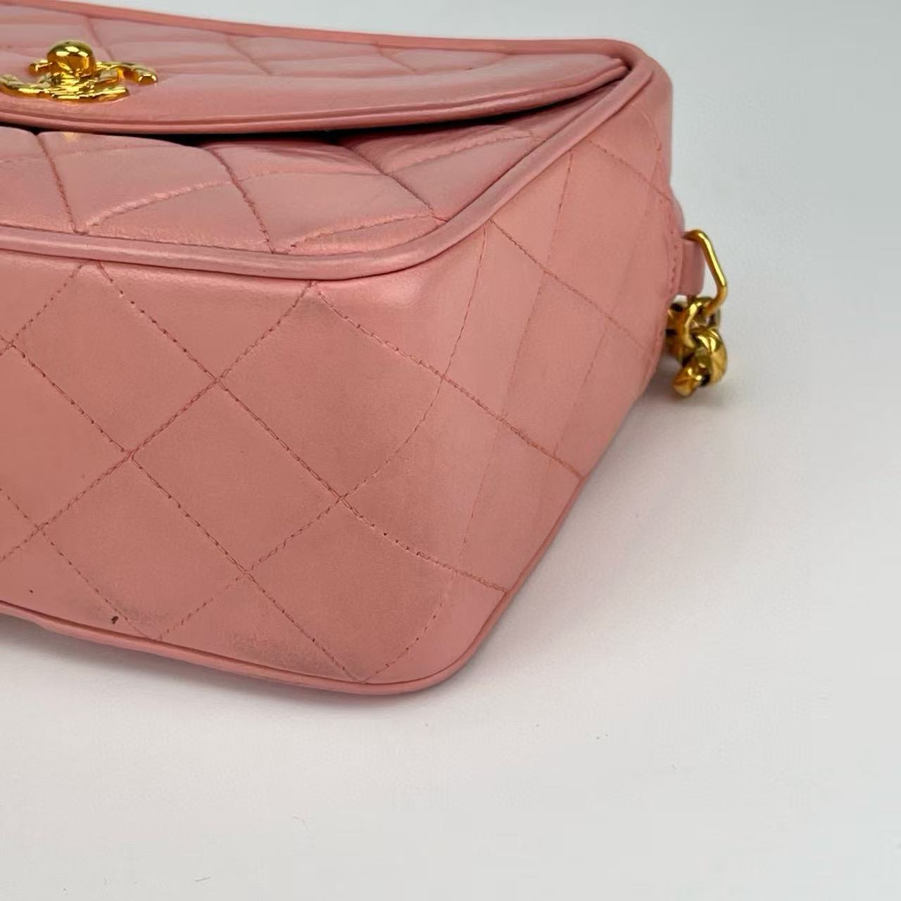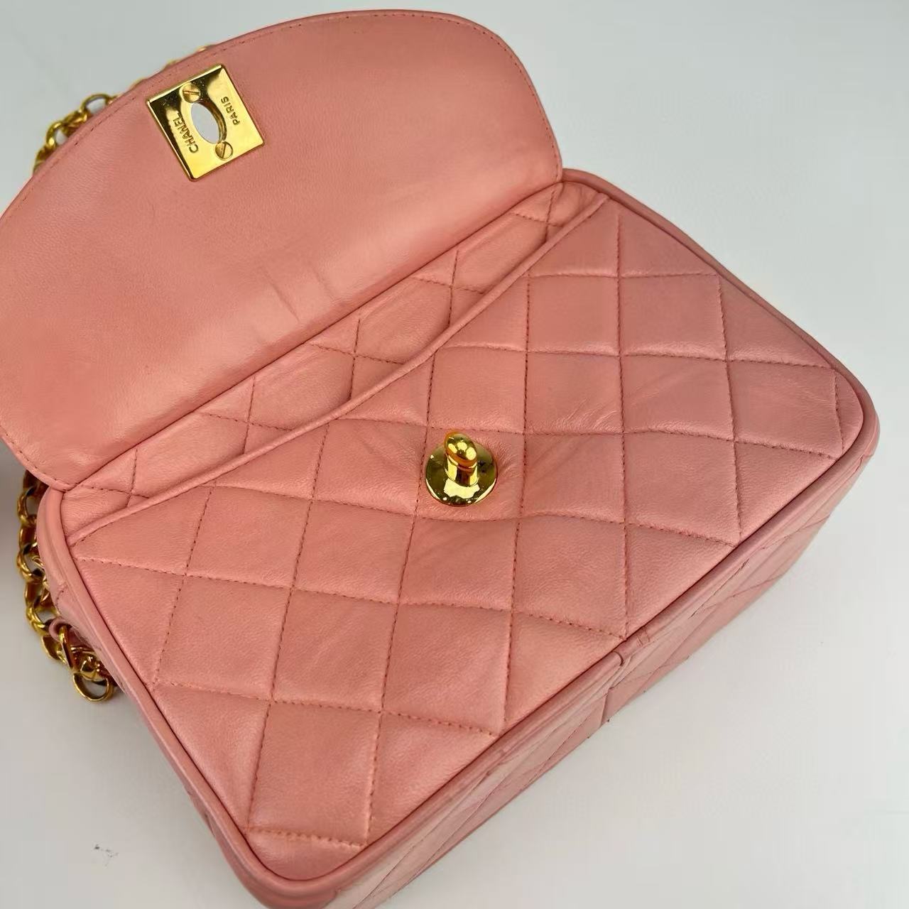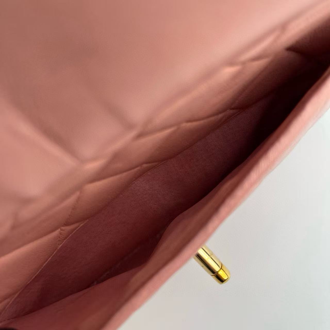 Hardware: Gold-tone hardware that harmonizes beautifully with the pink lambskin, adding a touch of elegance and warmth.