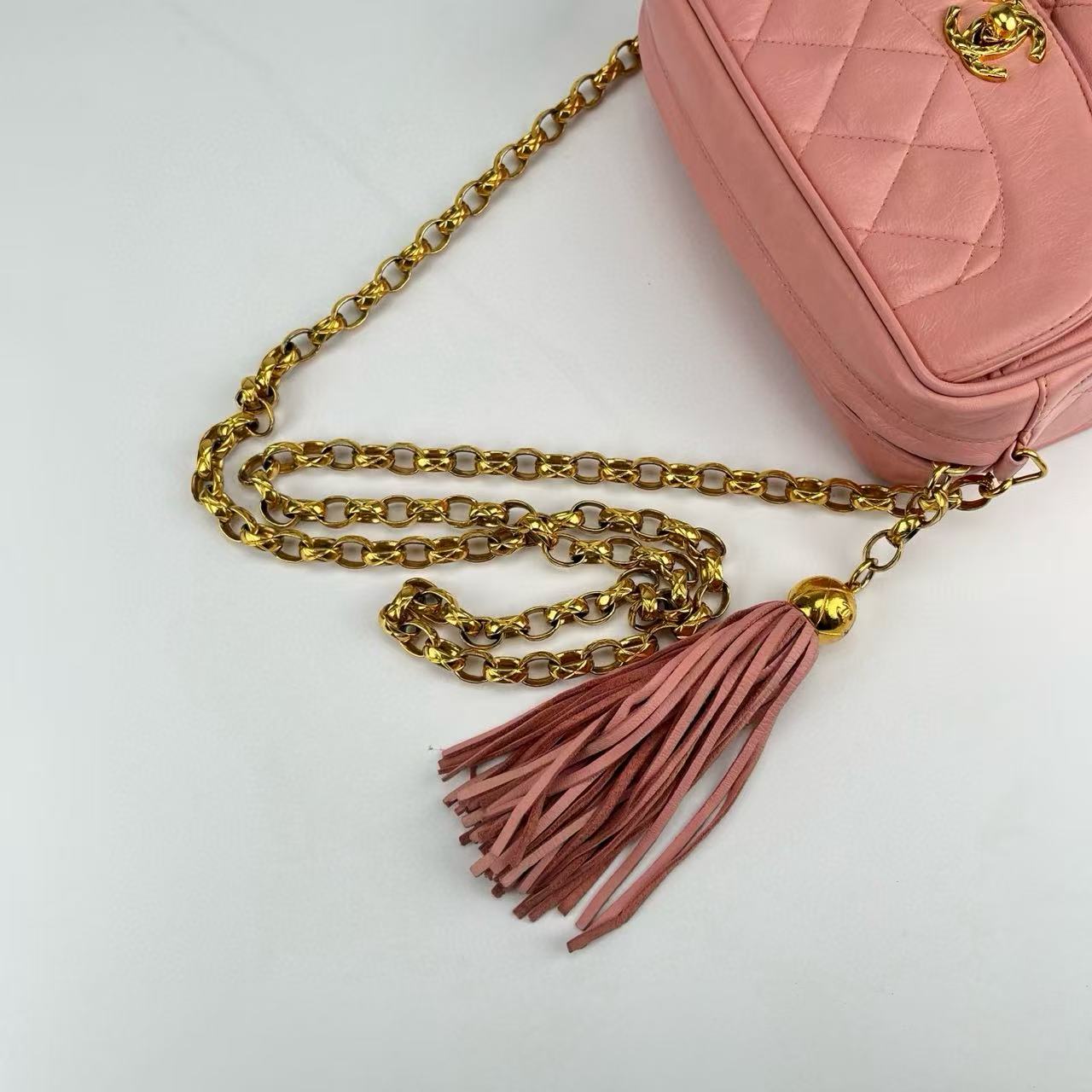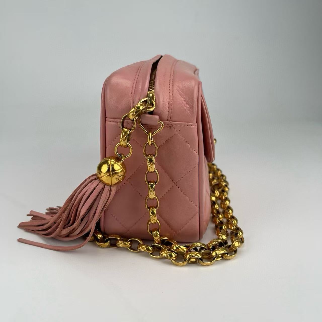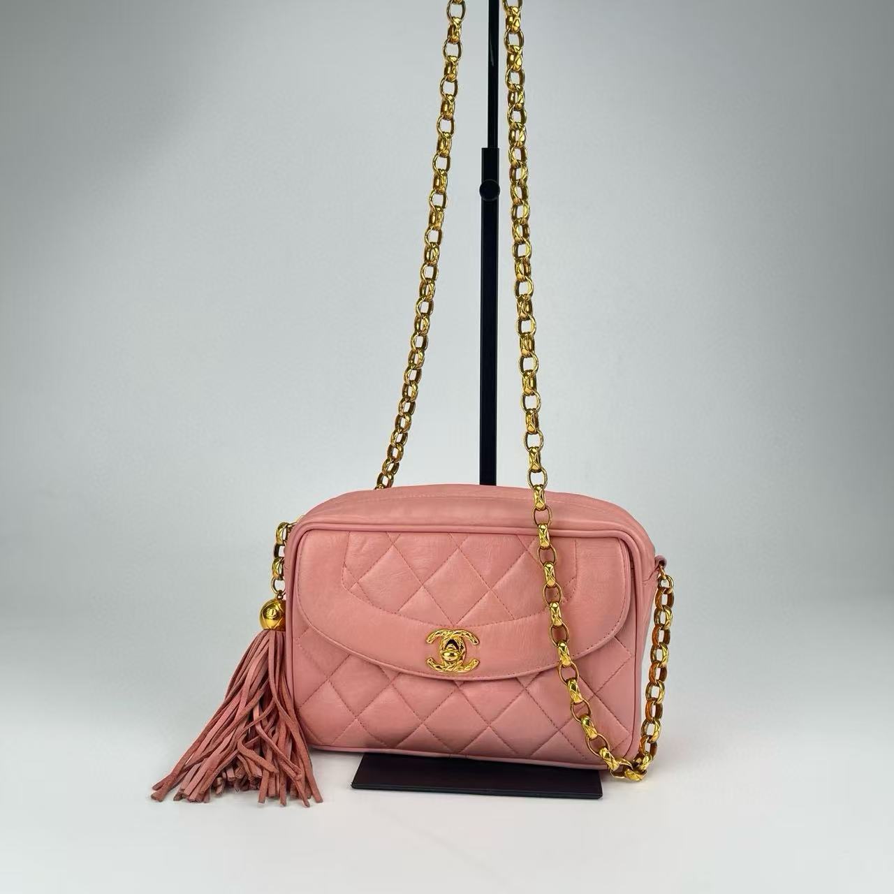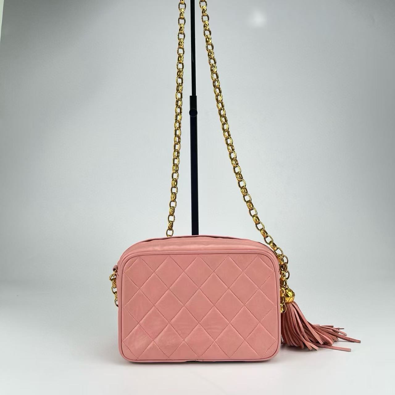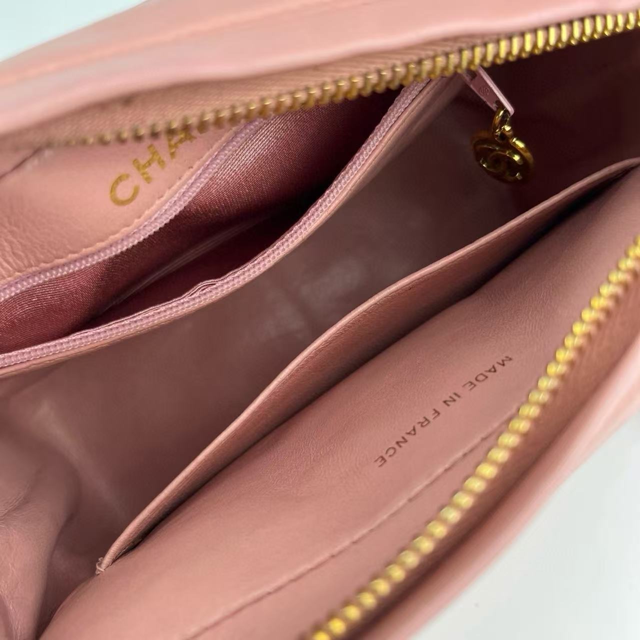 Hardware: Gold-tone hardware that harmonizes beautifully with the pink lambskin, adding a touch of elegance and warmth.