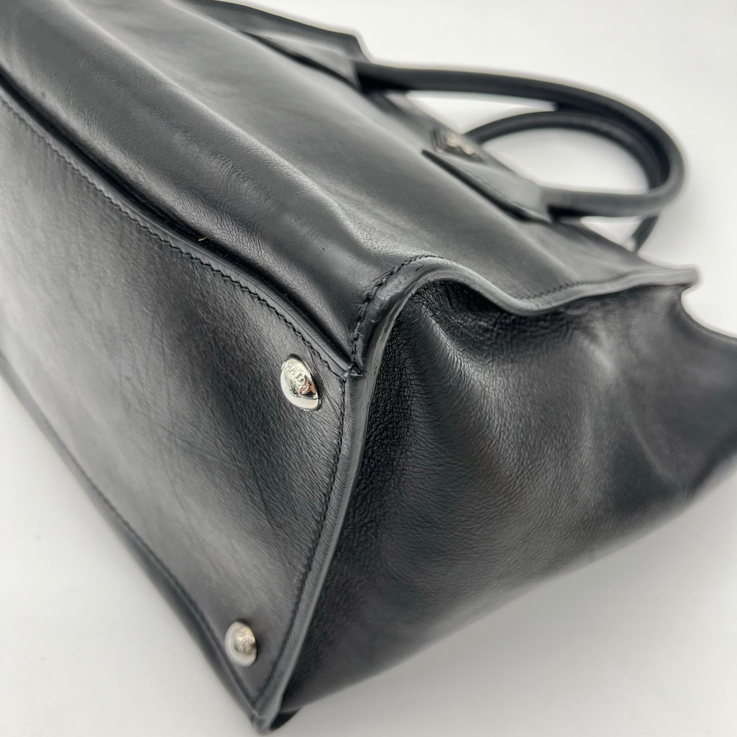 Prada Black Glace Calf Leather 2Way Tote Bag with Shoulder Strap [Used]