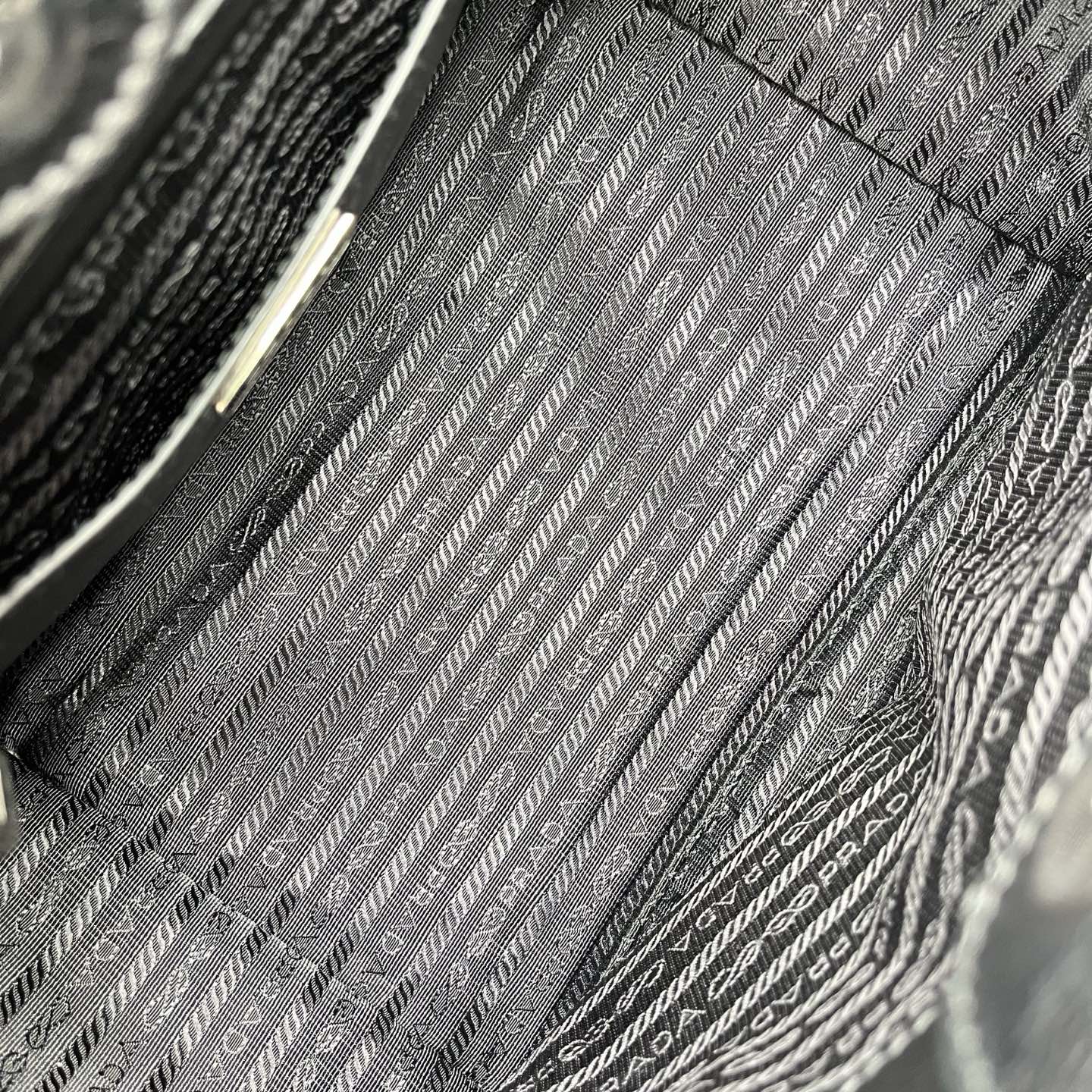 This Prada 2way tote bag is crafted from smooth black Glace calf leather, offering a sleek and understated silhouette with a refined finish. The structured body is accented by the iconic Prada triangle logo at the front, reflecting the brand’s timeless minimalist aesthetic.