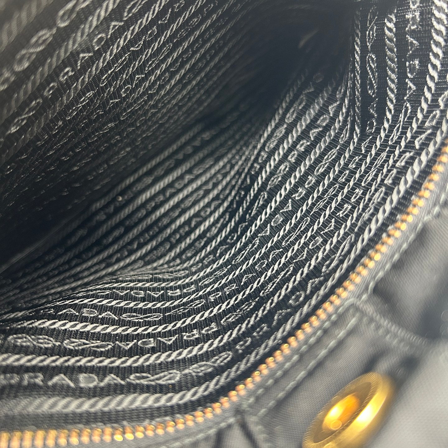 This Prada tote bag is crafted from black Nylon and accented with gold-tone hardware, creating a timeless and versatile look suitable for both casual and professional settings.