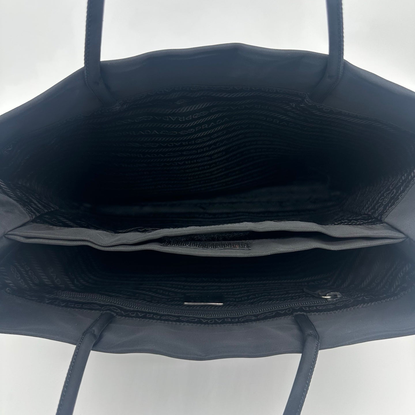Designed with comfortable top handles, this tote can be carried by hand or worn under the arm, offering versatility for daily use. The spacious interior easily accommodates essentials for work, travel, or casual outings. A clean and understated PRADA piece that balances practicality with contemporary style.