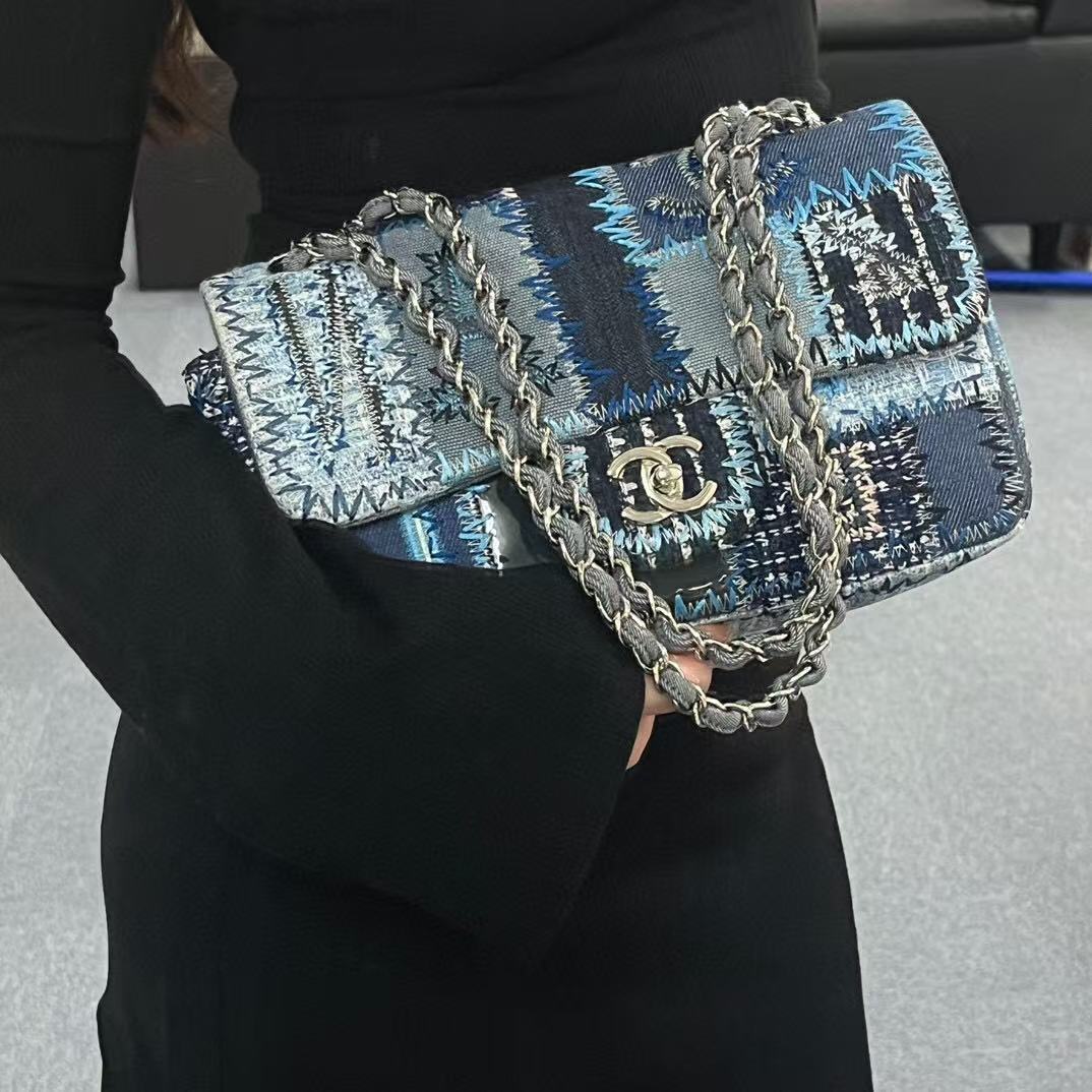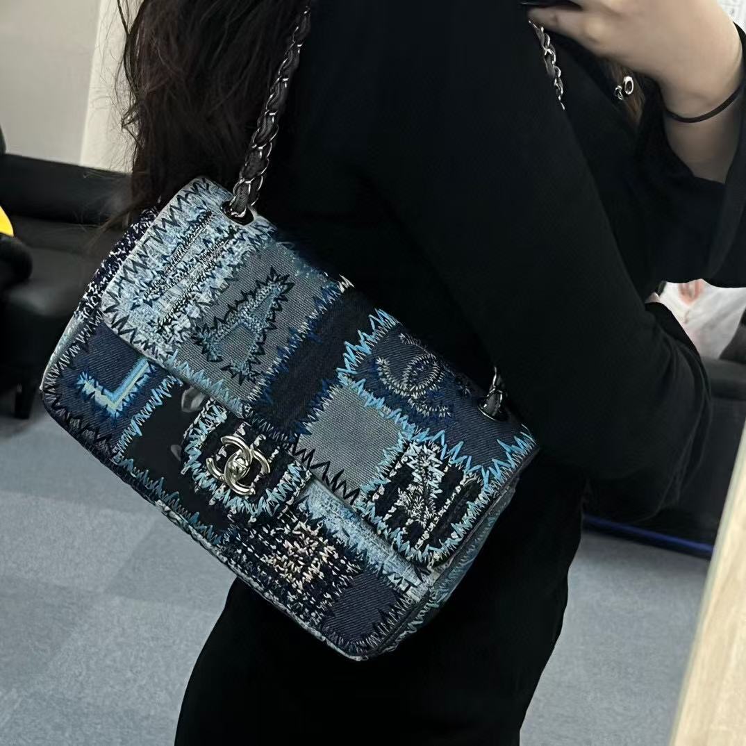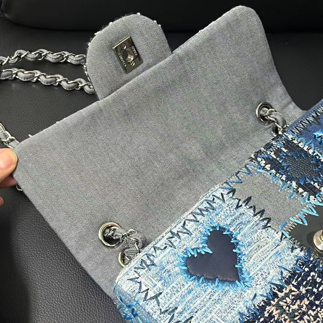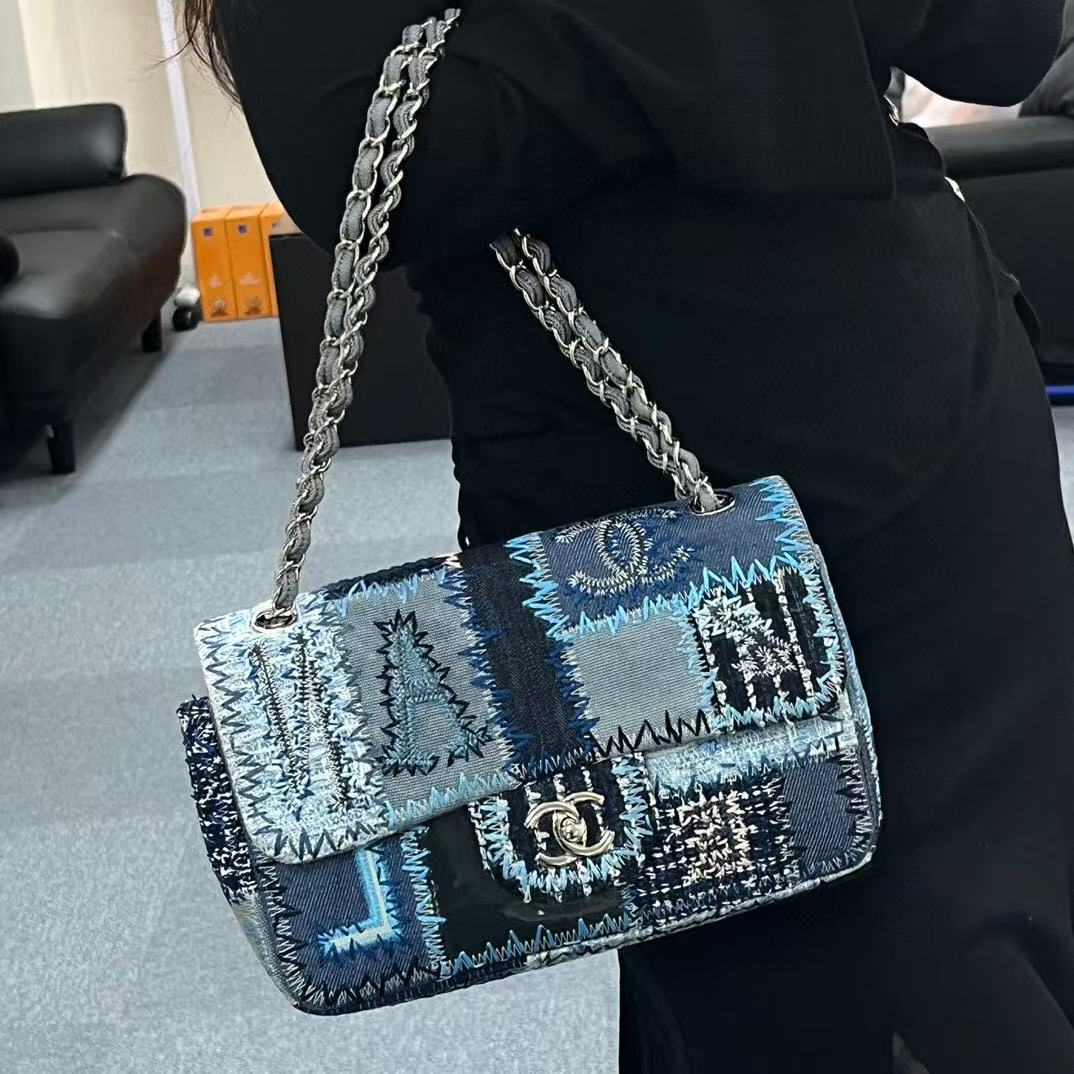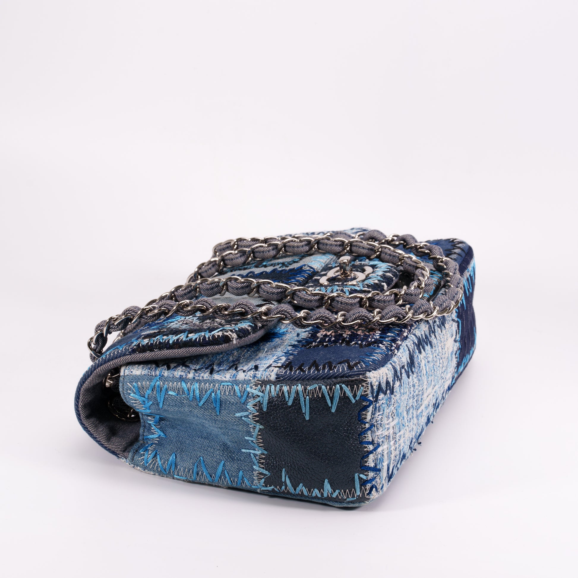 CHANEL Blue Fabric Canvas and leather Patchwork Jumbo Classic Flap25 Shoulerbag [Used]
