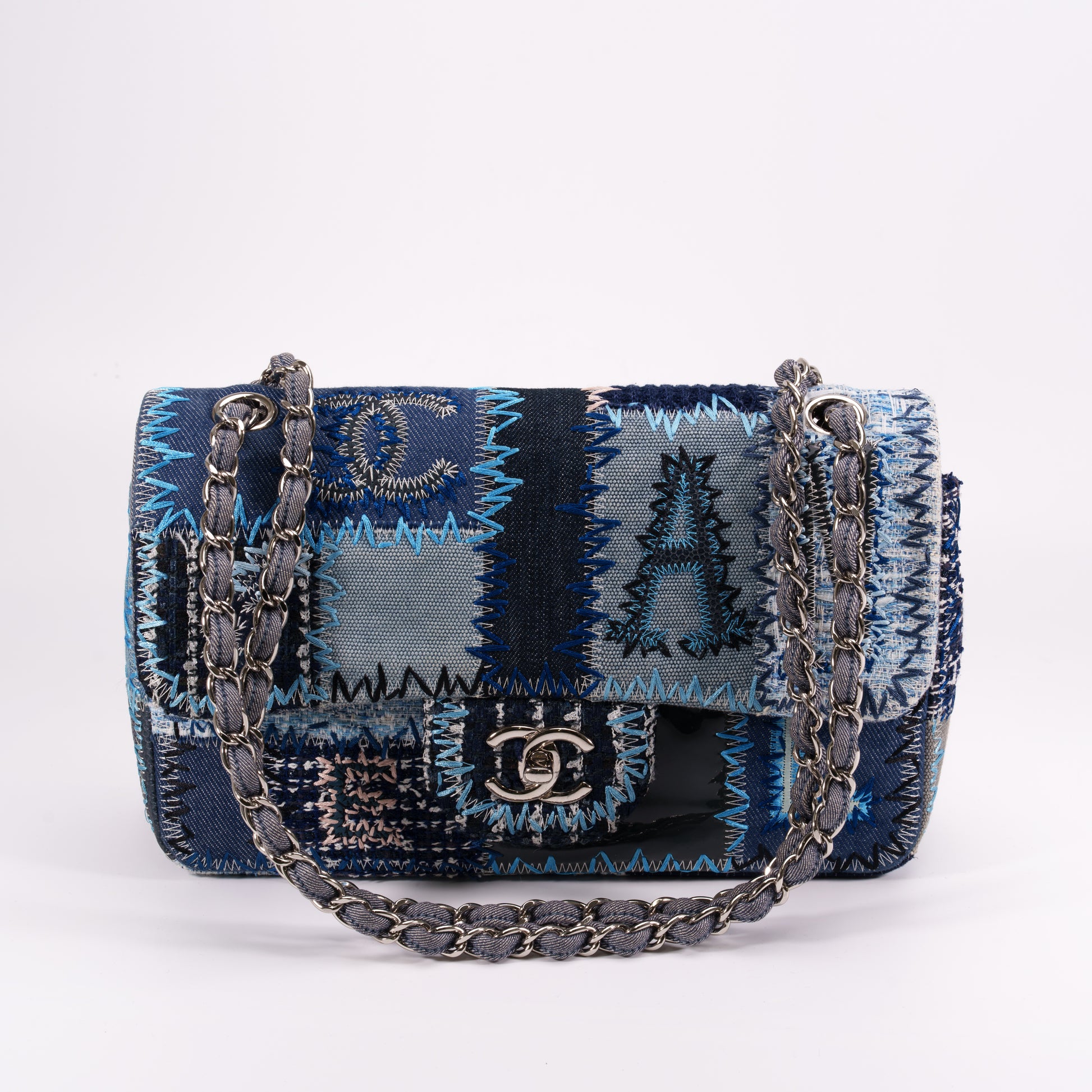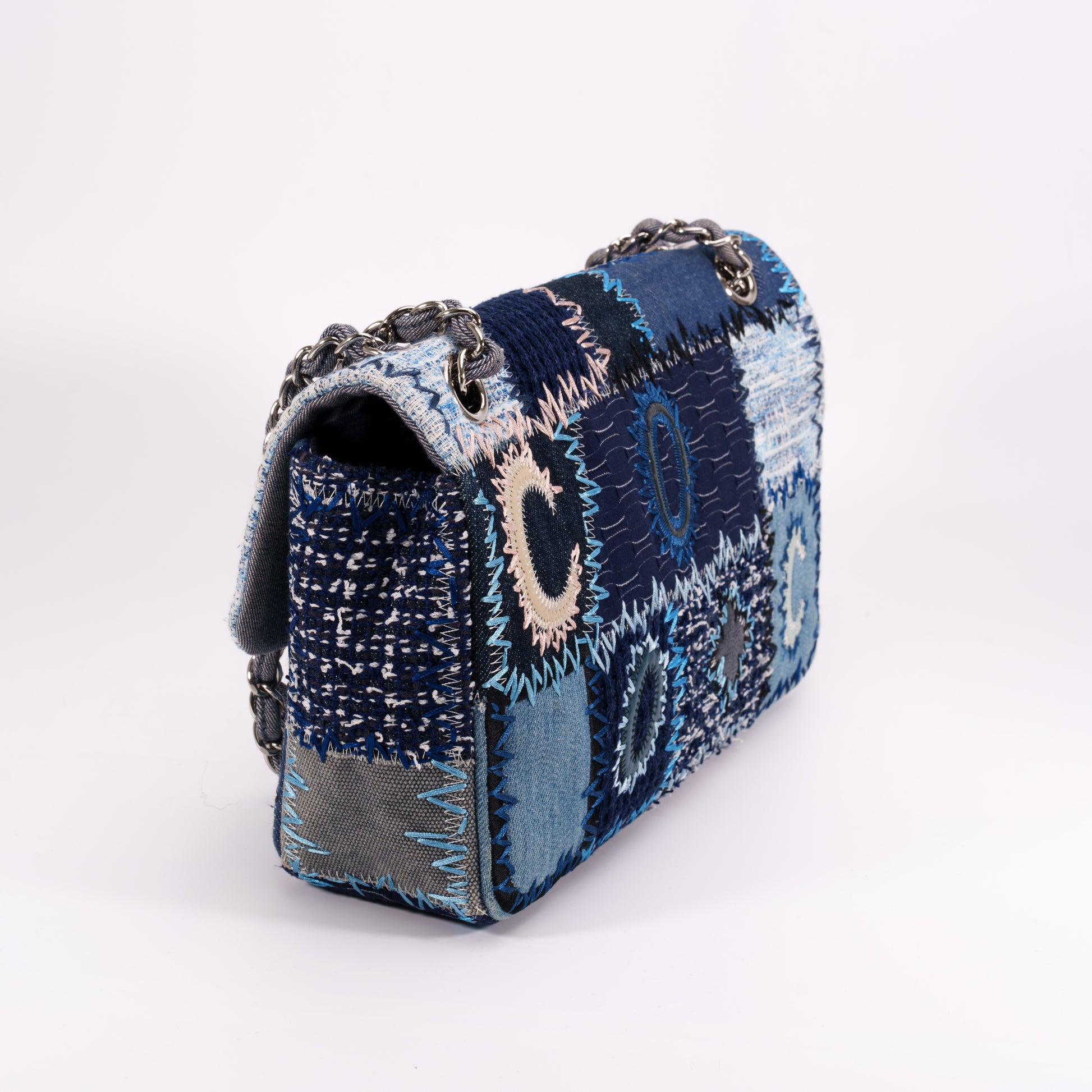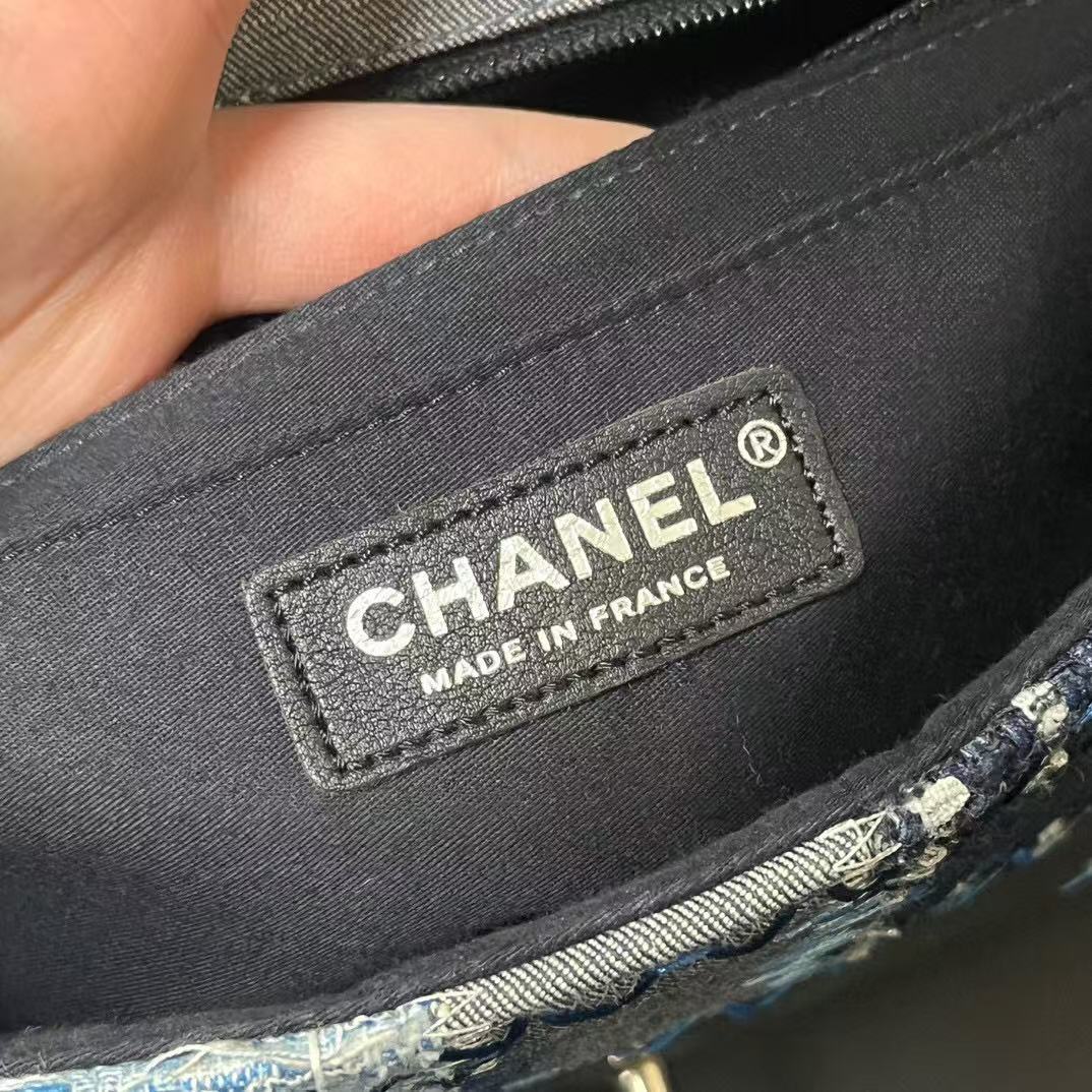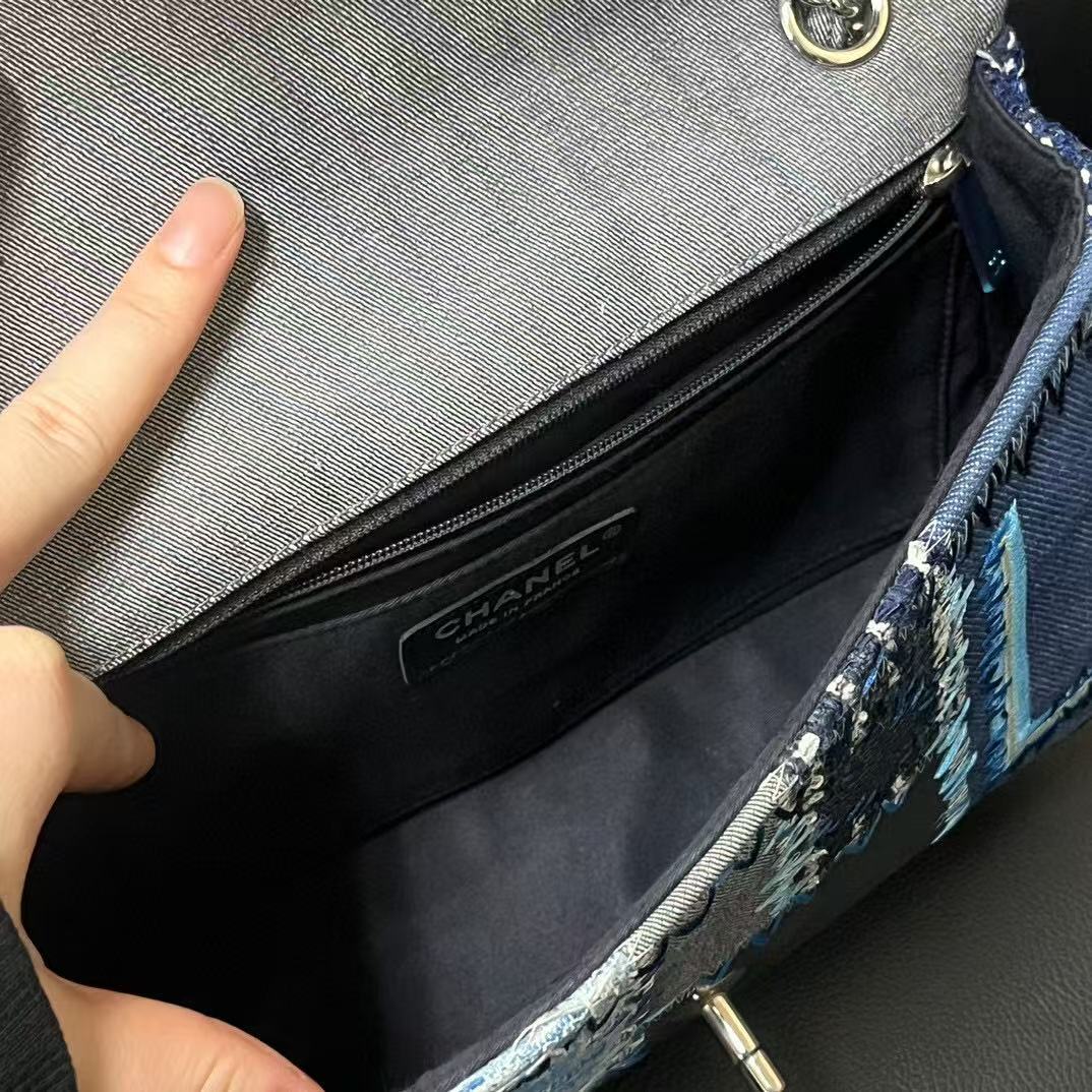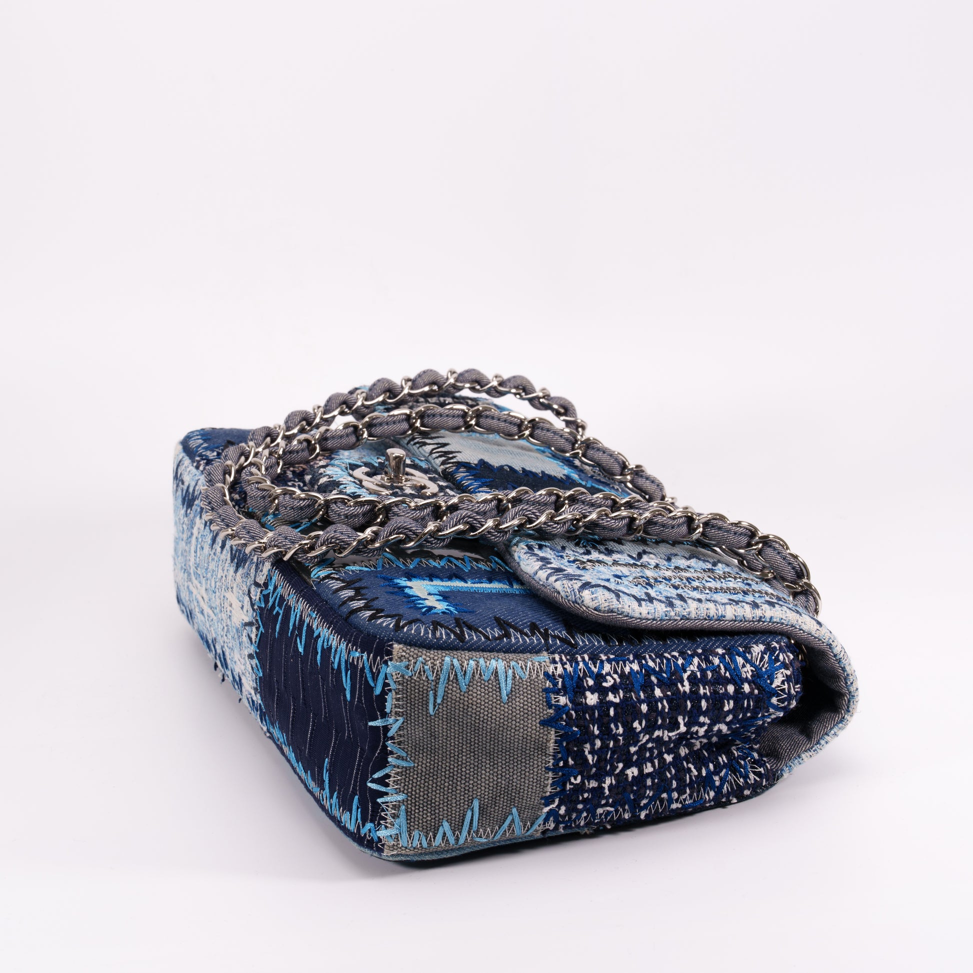 CHANEL Blue Fabric Canvas and leather Patchwork Jumbo Classic Flap25 Shoulerbag [Used]