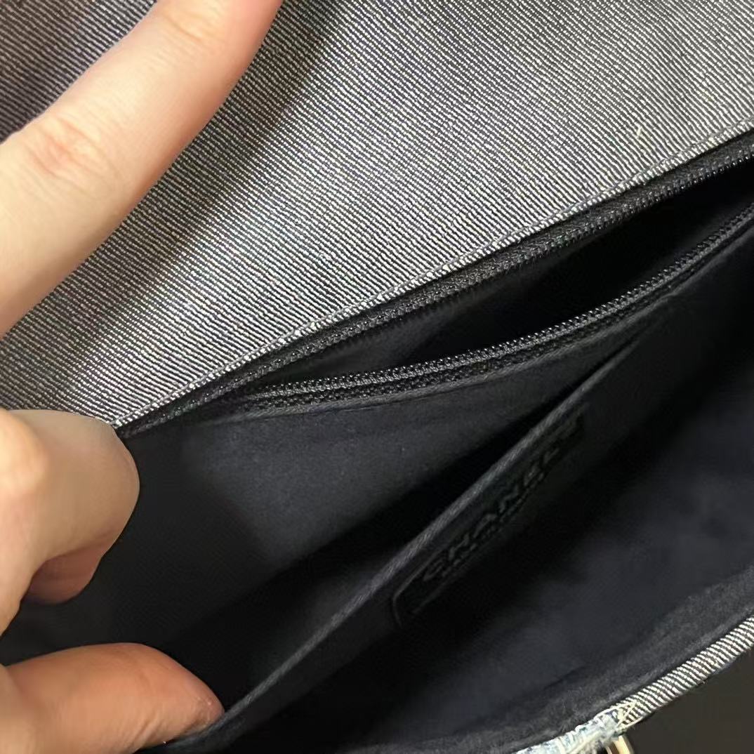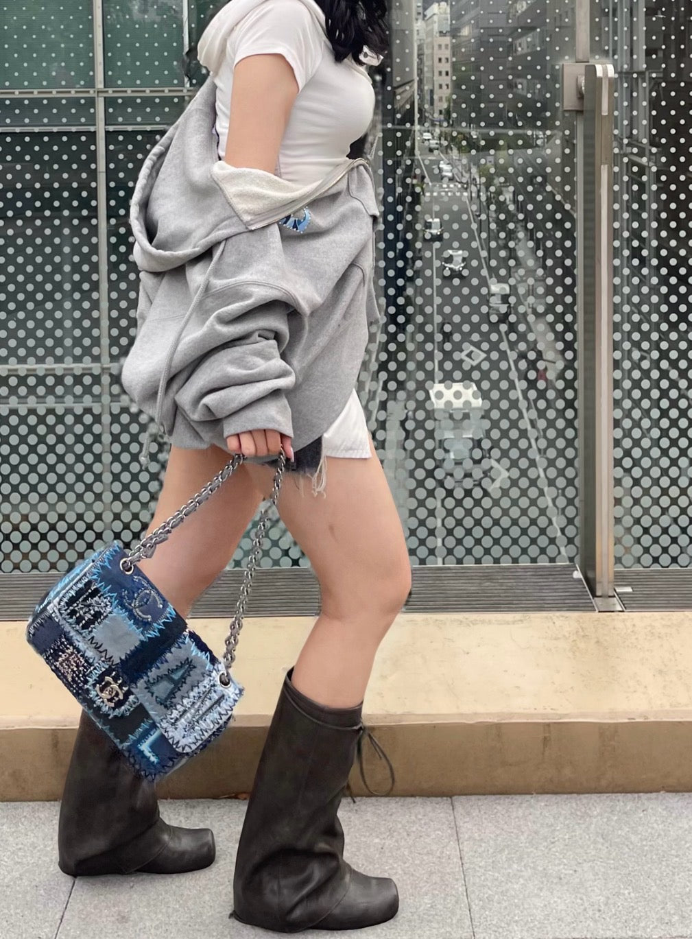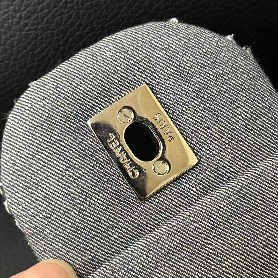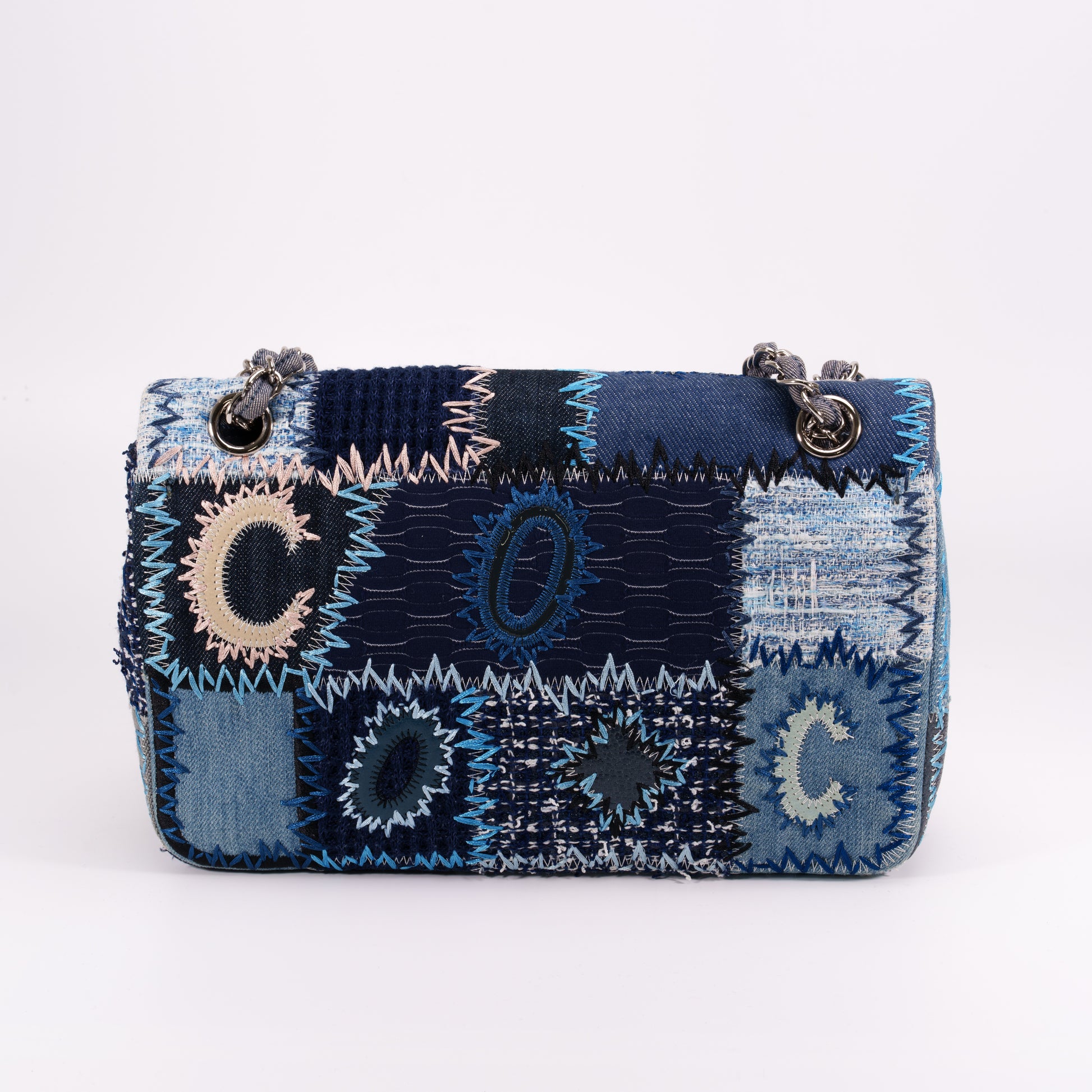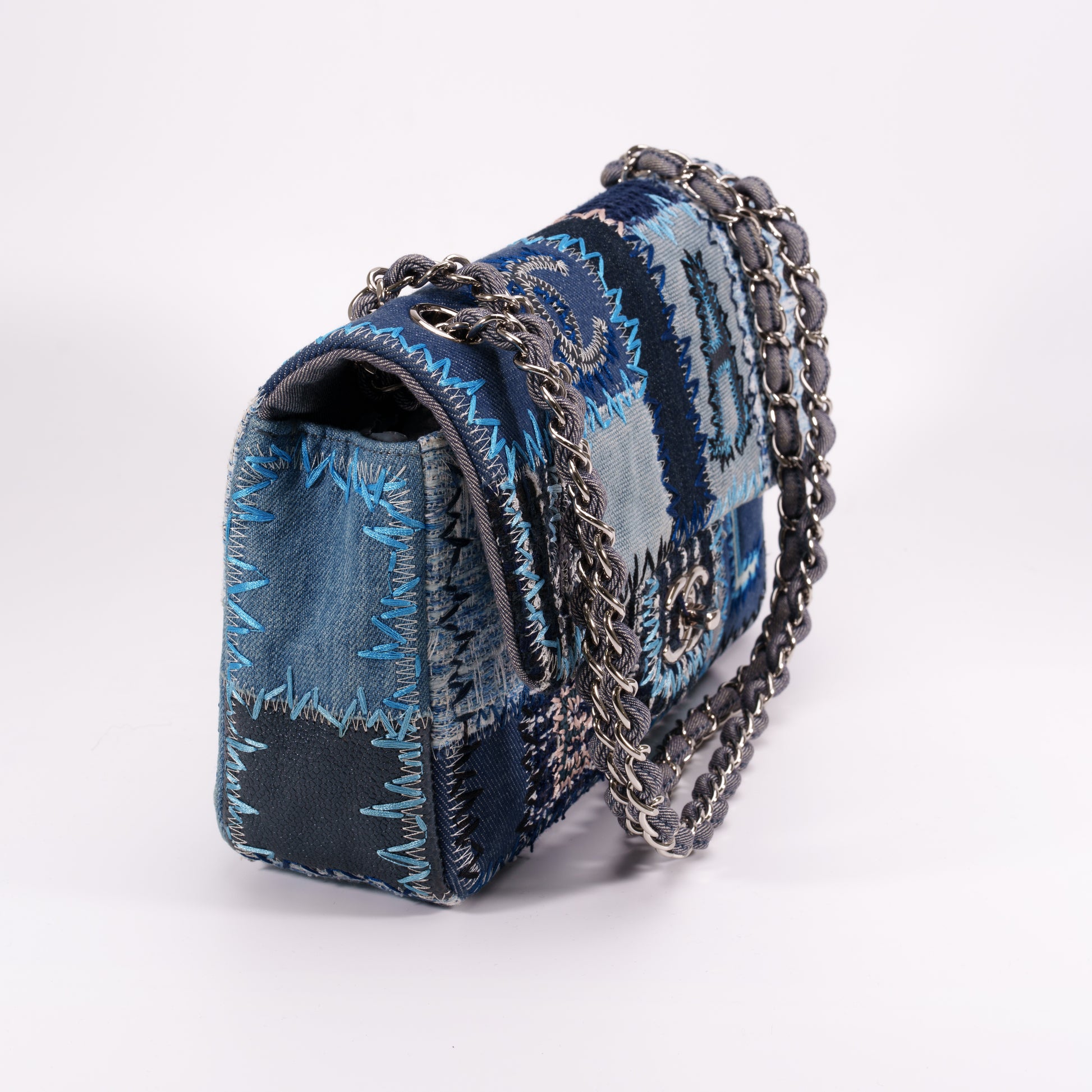 CHANEL Blue Fabric Canvas and leather Patchwork Jumbo Classic Flap25 Shoulerbag [Used]